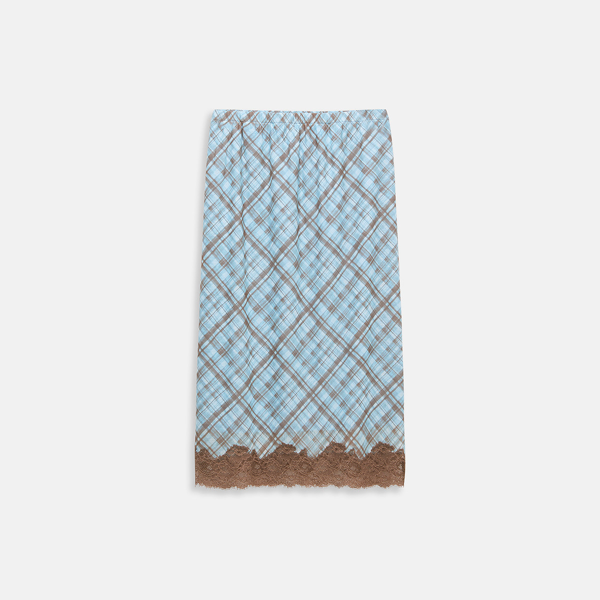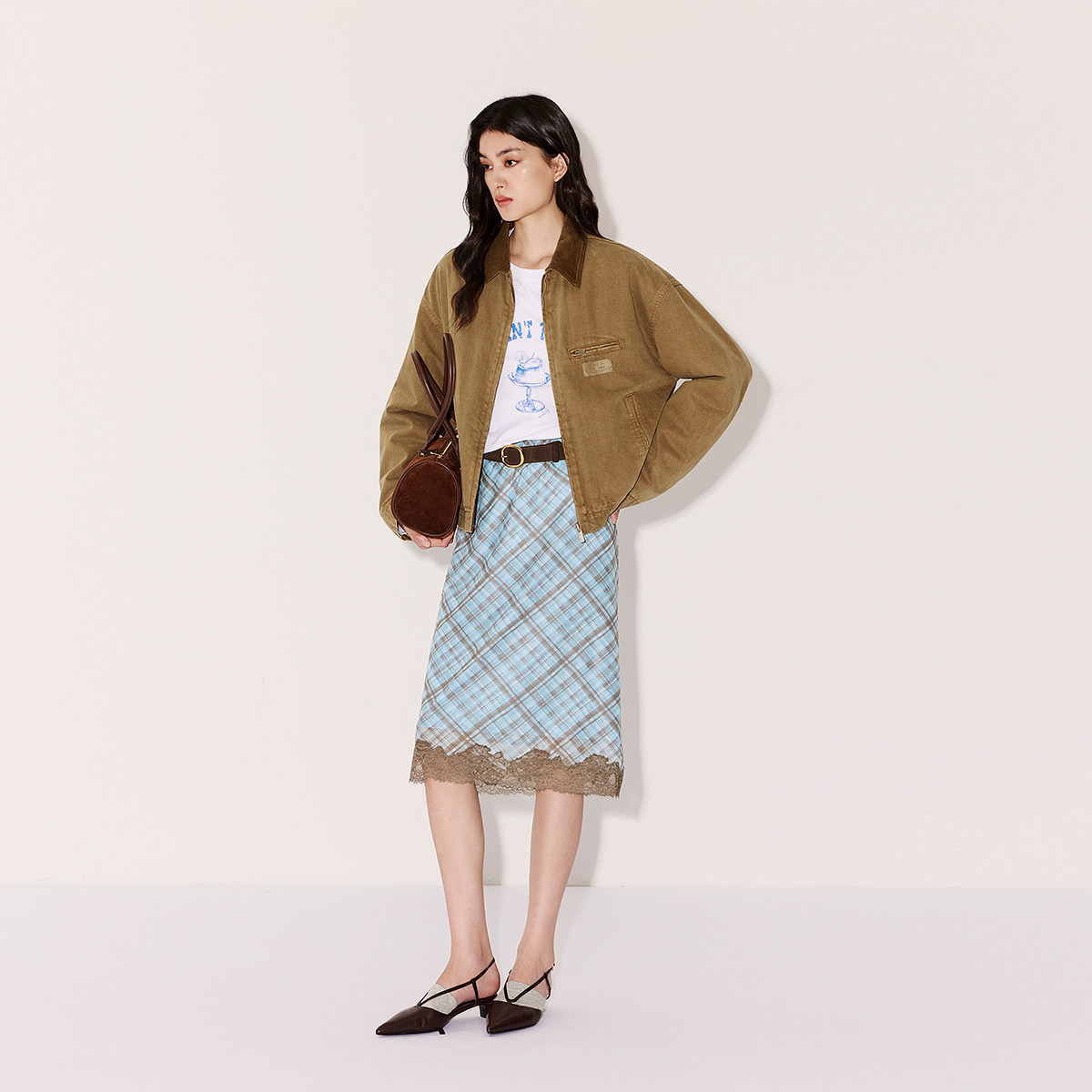 【新品】OCHIRLY欧时力 格子印花直筒半身裙2026夏复古蕾丝边裙子