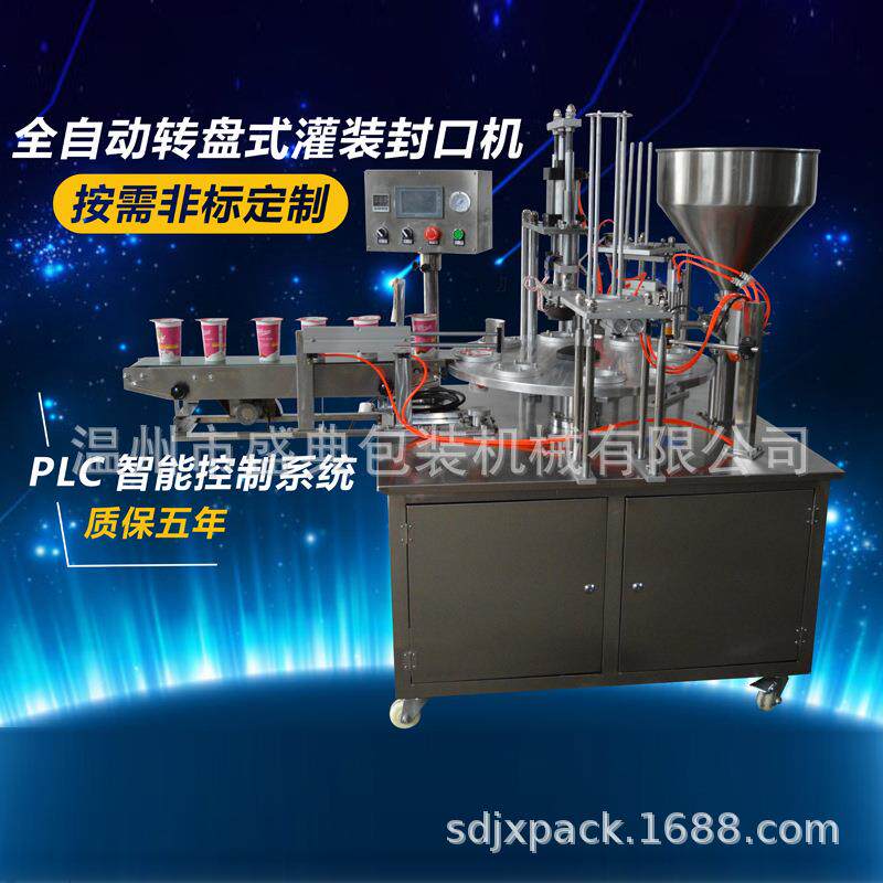 KIS-900圆盘式酸奶杯一出二盒全自动连续落杯灌装放片封口机 定做