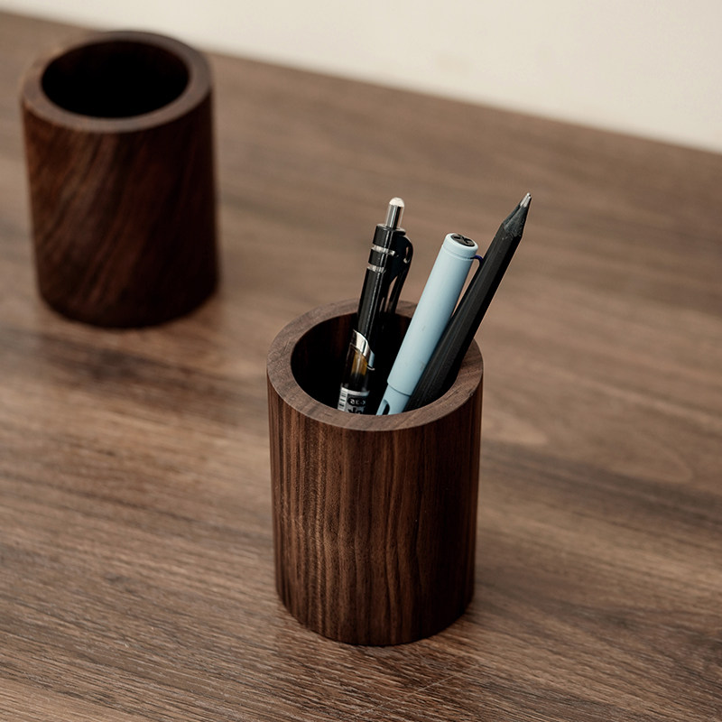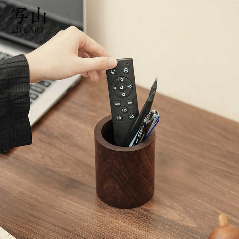 北美黑胡桃木笔筒实木桌面办公室轻奢收纳桶质创意高颜值学生储物
