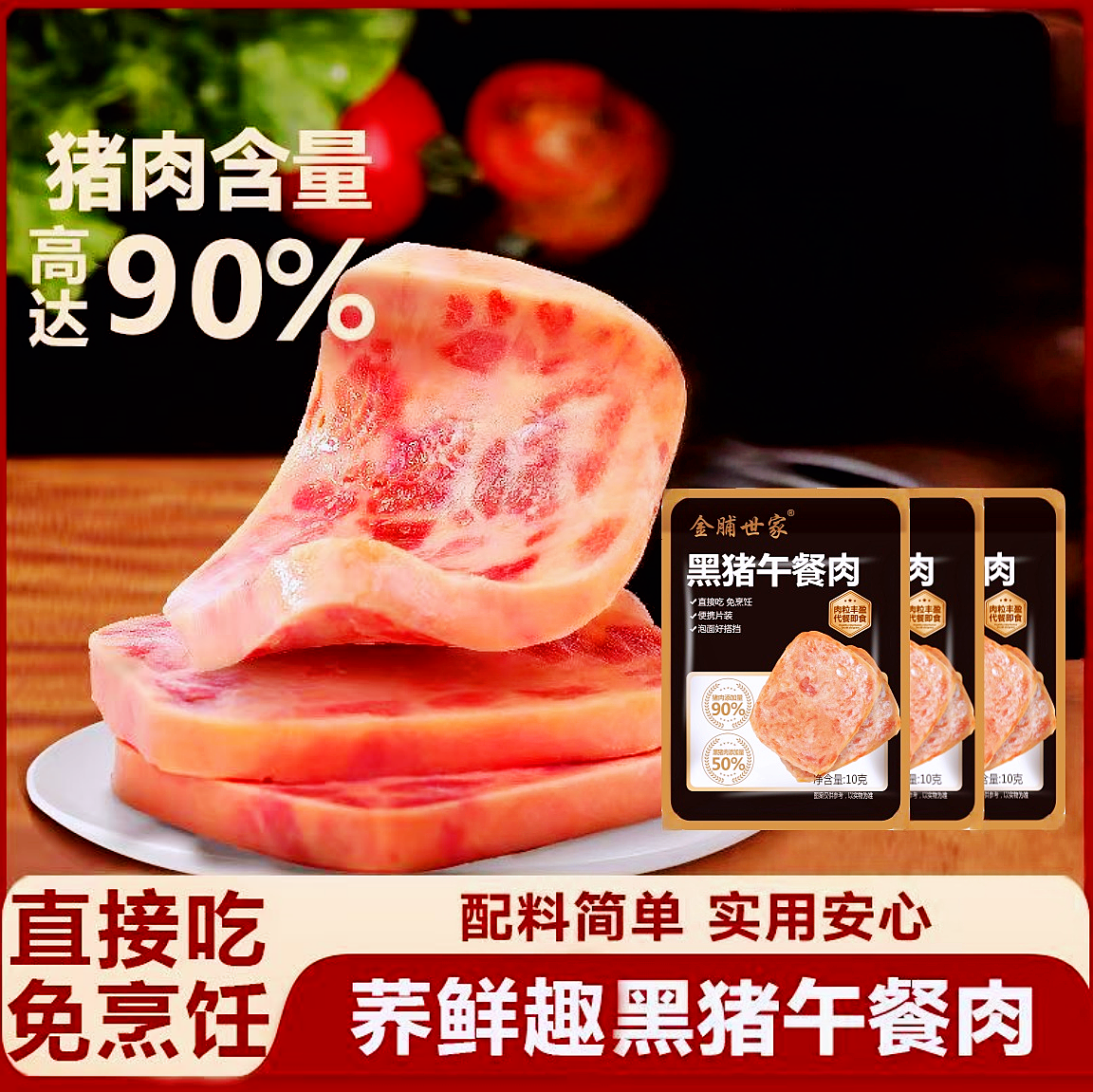 黑猪肉午餐肉15包即食火腿早餐独立包装小零食泡面搭档健康代餐