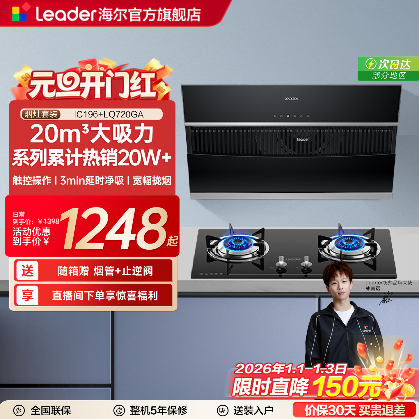 海尔出品统帅抽油烟机燃气灶一套IC196侧吸家用厨房烟灶套装官方