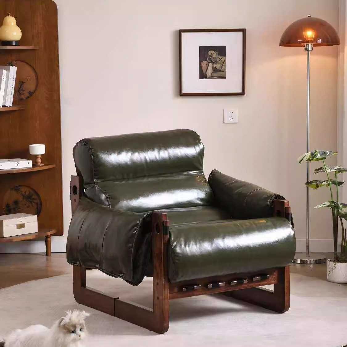 复古轻奢泽西岛椅家用客厅懒人皮沙发阳台休闲沙发椅单人实木躺