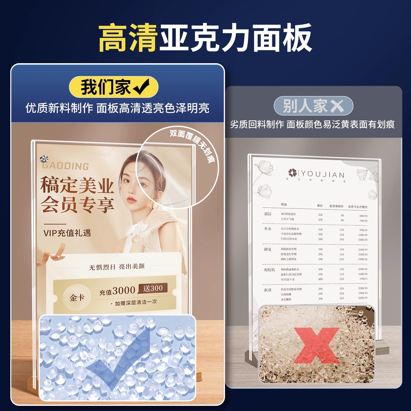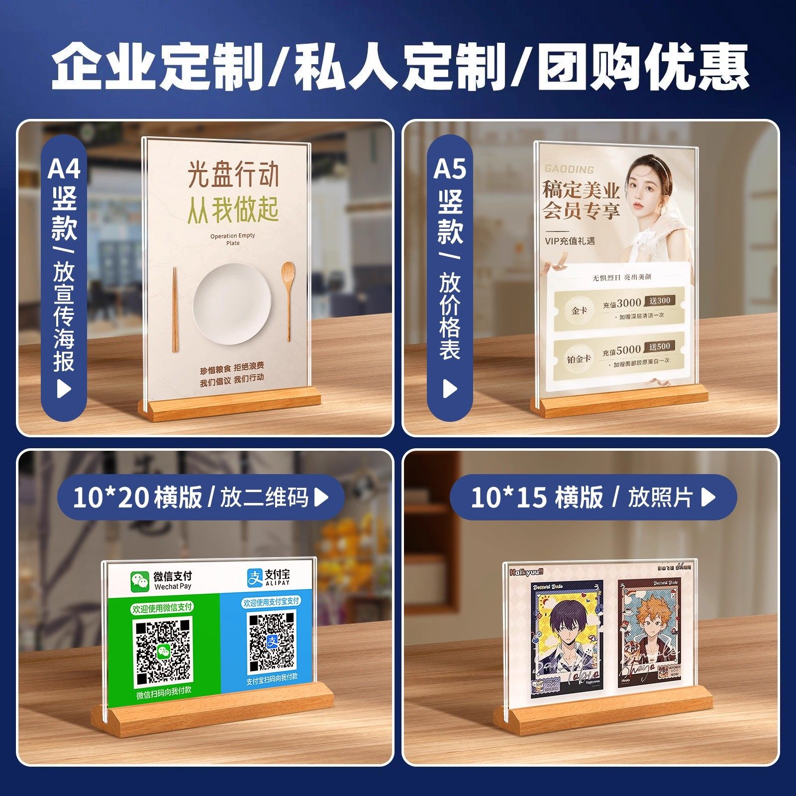 台卡亚克力展示牌桌牌桌面立牌a4展示架广告牌台牌摆台木质台签价格牌水牌立式标价收藏打卡价目表菜单A5餐饮