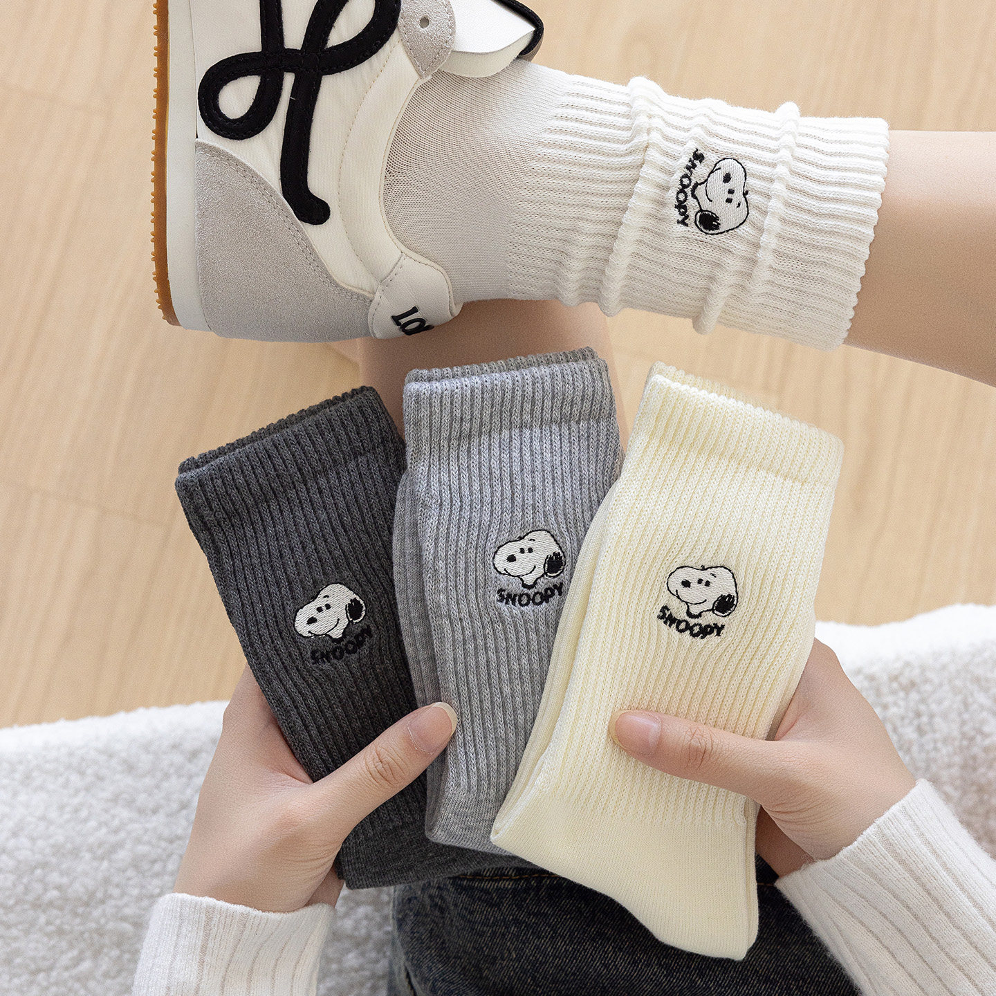 卡拉美拉秋冬新款袜子史努比联名女袜卡通中筒袜简约女袜女士棉袜