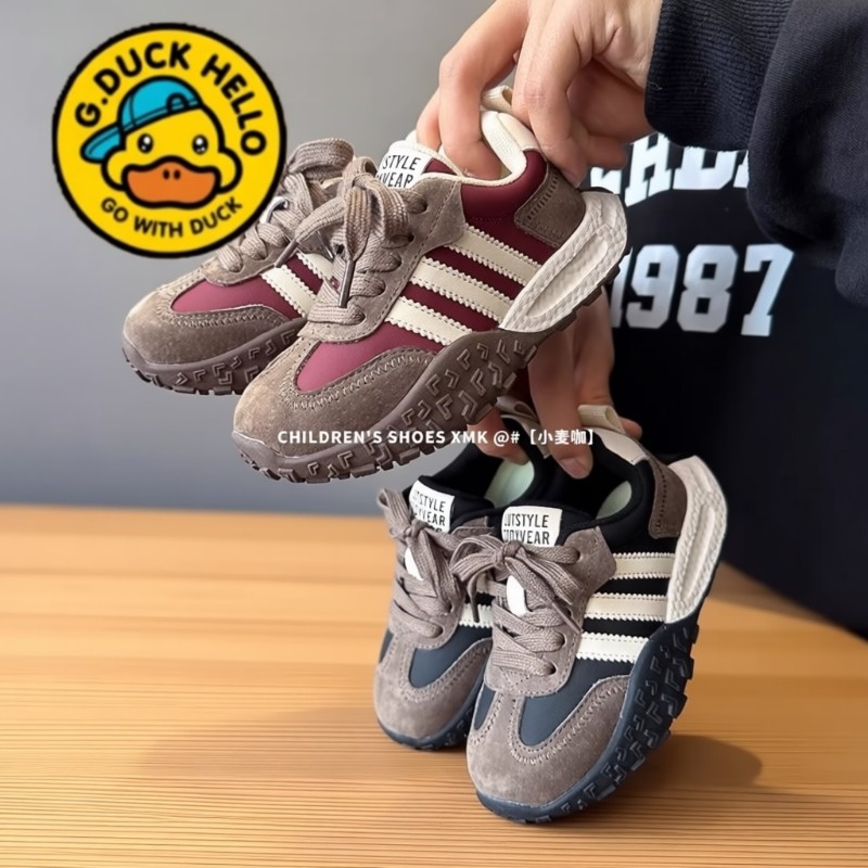 小黄鸭儿童运动鞋加绒2025秋冬新款男童真皮跑步鞋女童二棉宝宝鞋