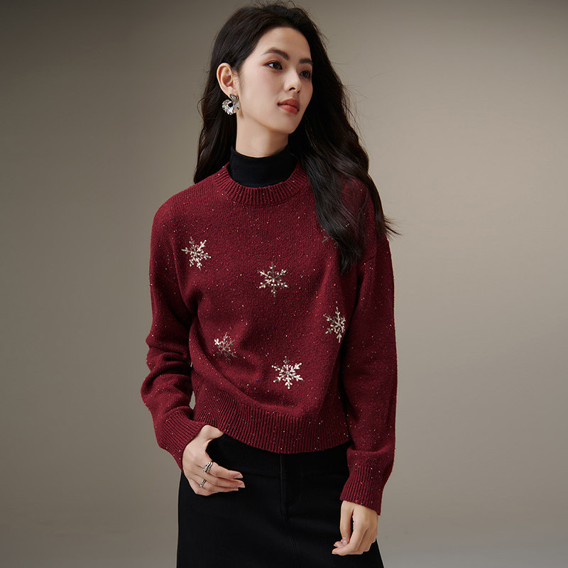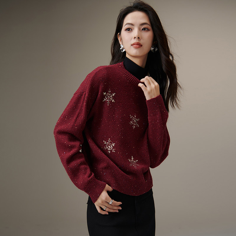 晚白2026年春季新款时尚气质红色氛围感新年上衣印花大码针织衫女