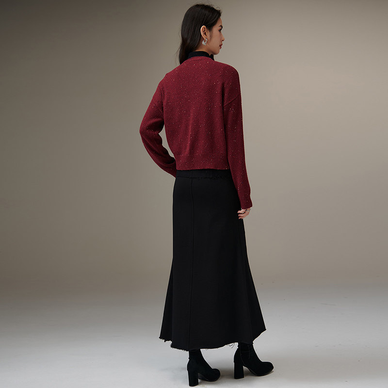 【反季清仓】秋季羊绒衫女堆堆领短款套头毛衣高领修身打底针织衫