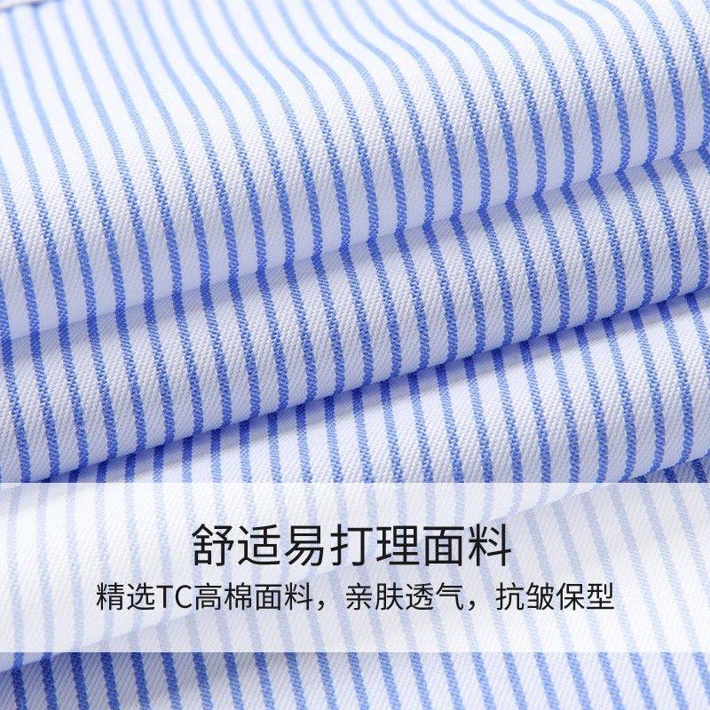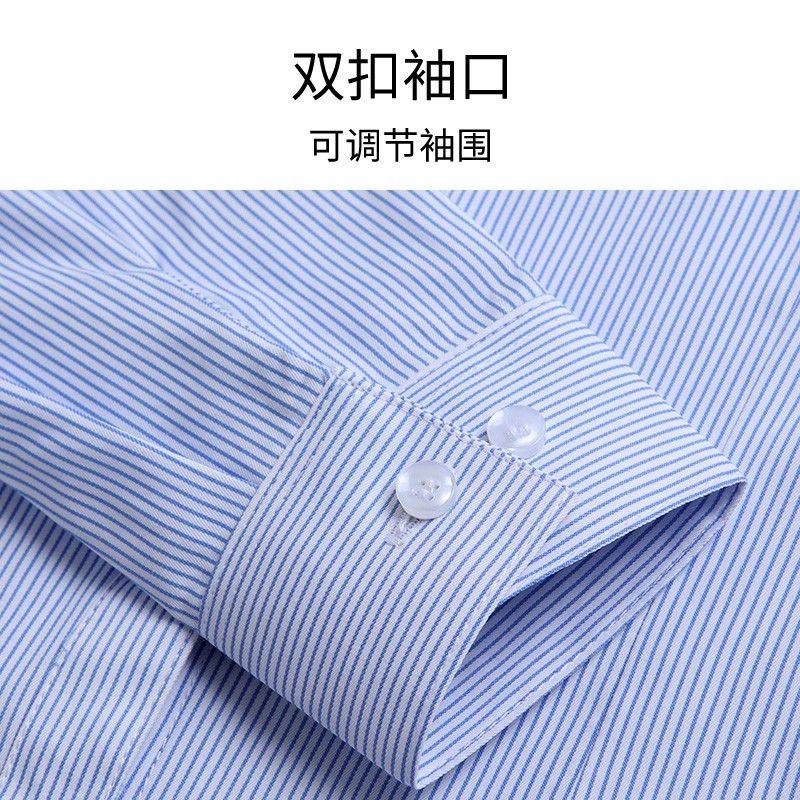 男士蓝条纹衬衫长袖新款职业装春秋季白条纹工装正装潮流商务衬衣