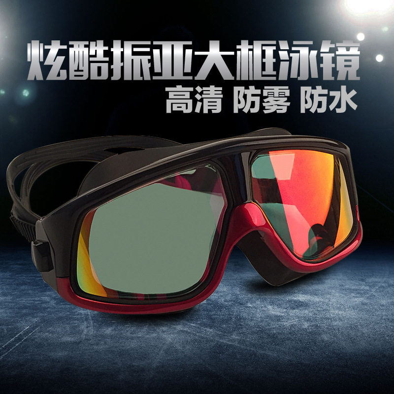 新款大框炫彩电镀泳镜潜水镜防雾防水七彩镀膜高清游泳镜8801