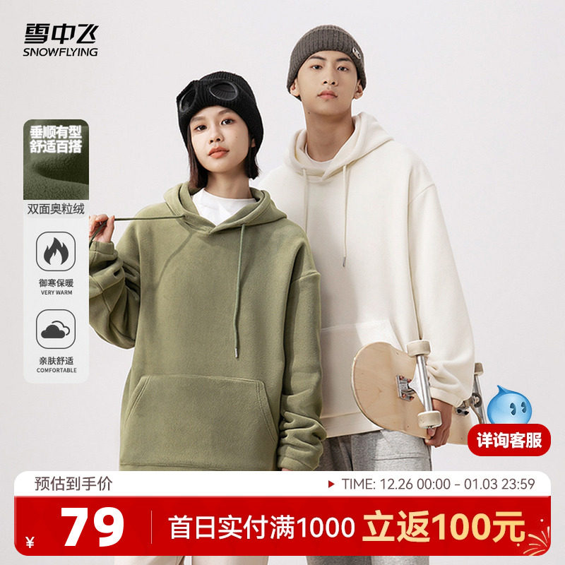 雪中飞情侣卫衣男女同款春秋2025新款加绒加厚很仙的情侣装外套PC