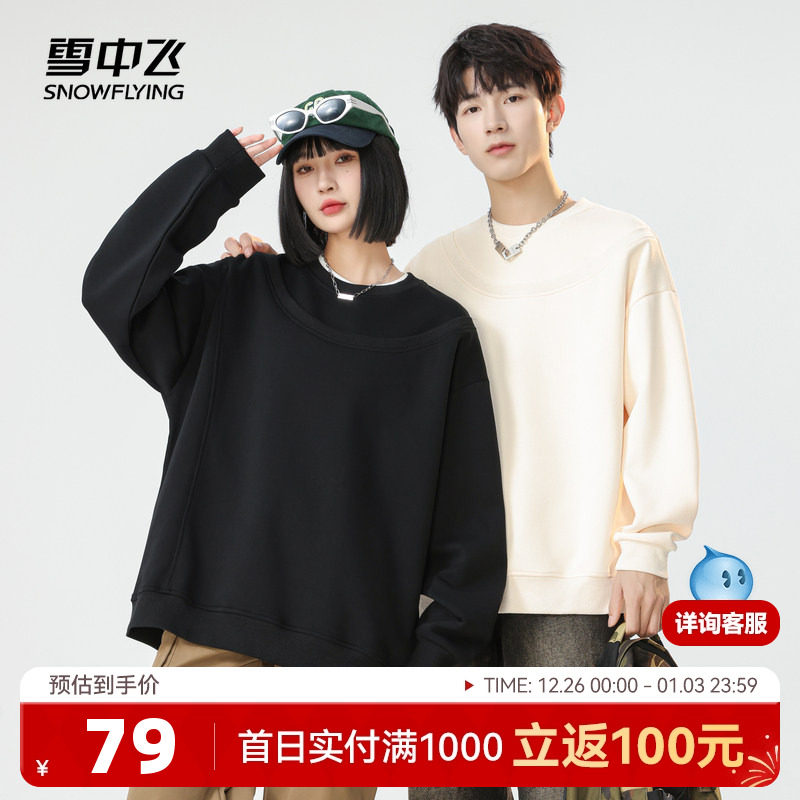雪中飞2025春秋新款男女情侣款圆领休闲卫衣纯色设计简约日系潮