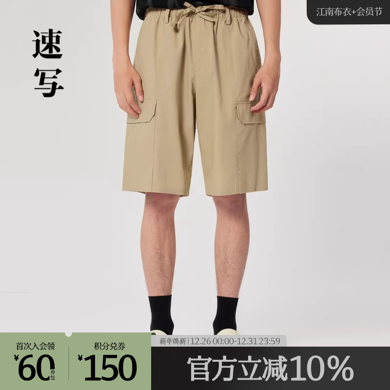 速写outlets奥莱男装春秋折扣新款中短裤工装风宽松直筒五分裤潮