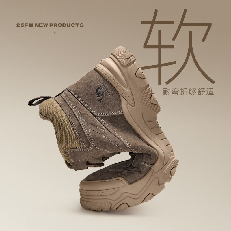 骆驼男鞋2025秋冬新款加绒马丁靴休闲厚底时尚百搭高帮沙漠工装靴