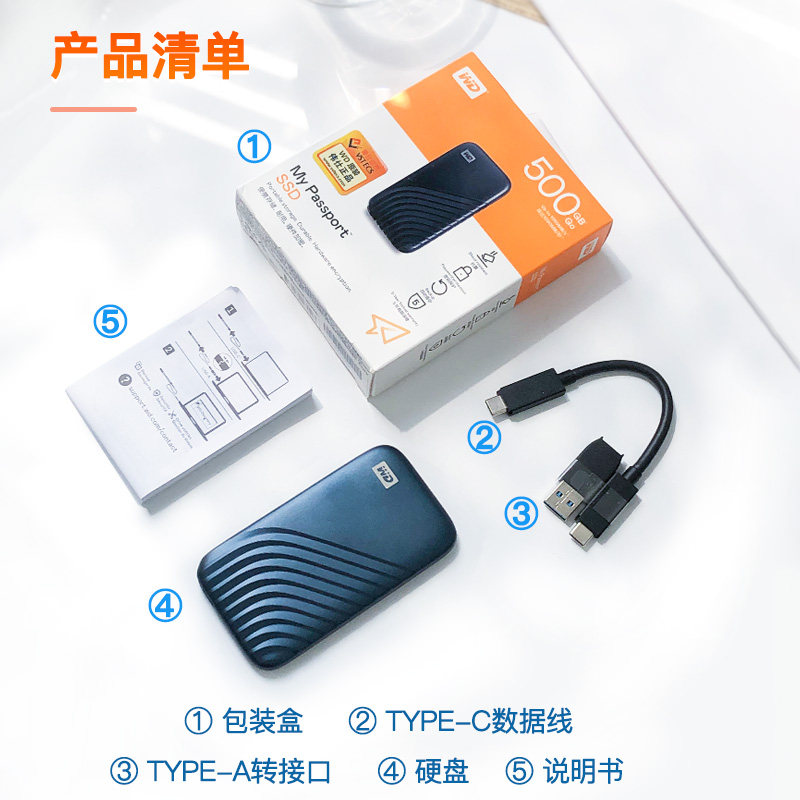 WD西部数据移动固态硬盘1T type-c手机电脑2t外接高速pssd 加密