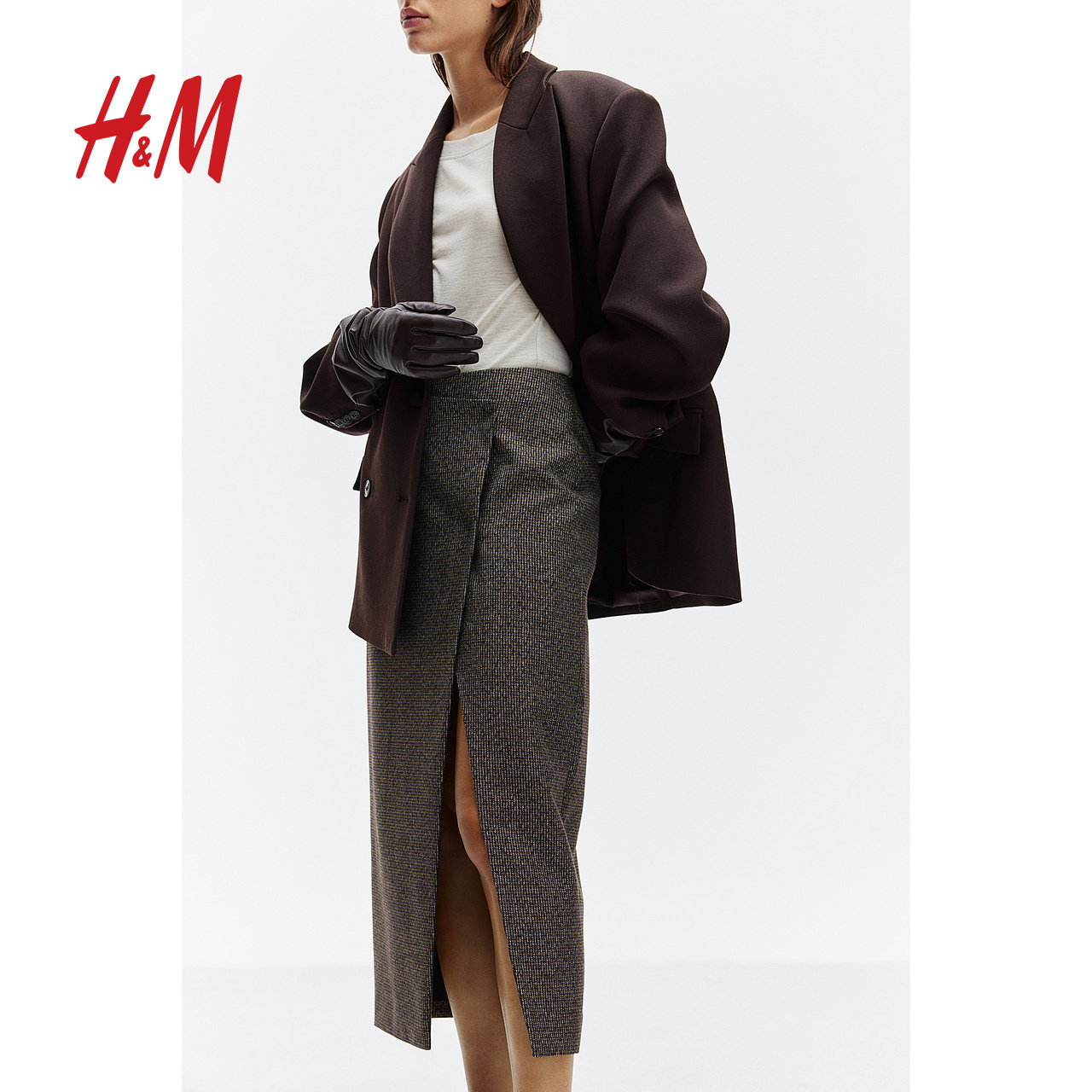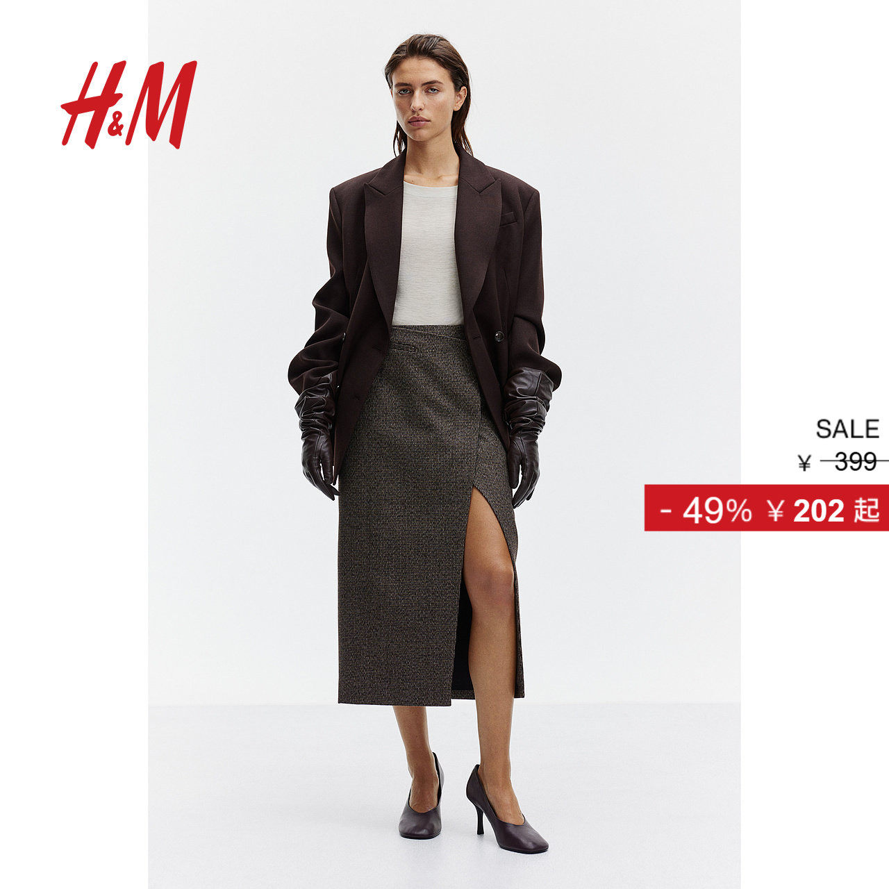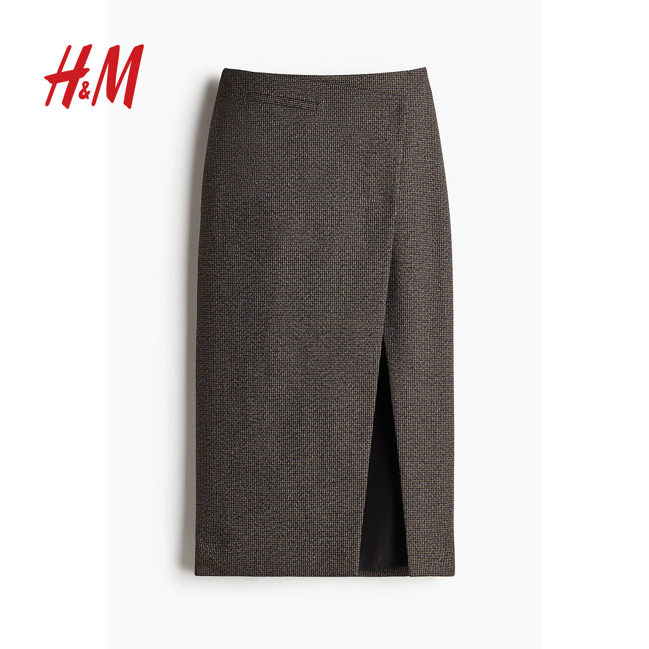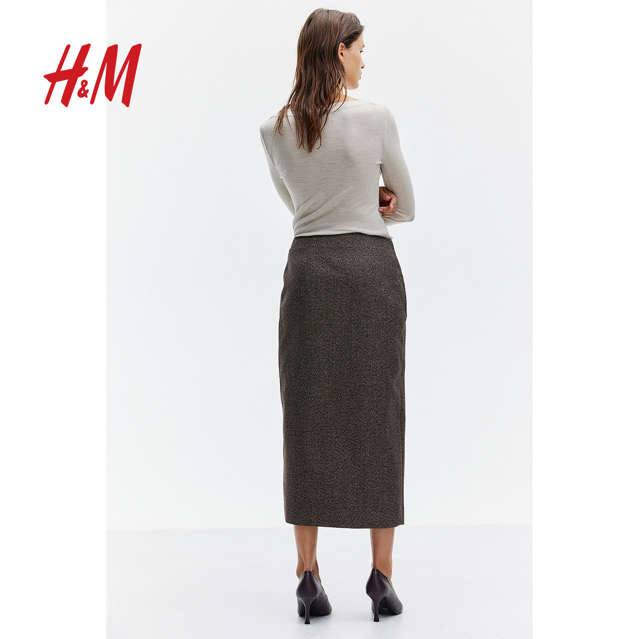 HM女装半身裙冬季围裹式铅笔裙梭织舒适中长裙1253734