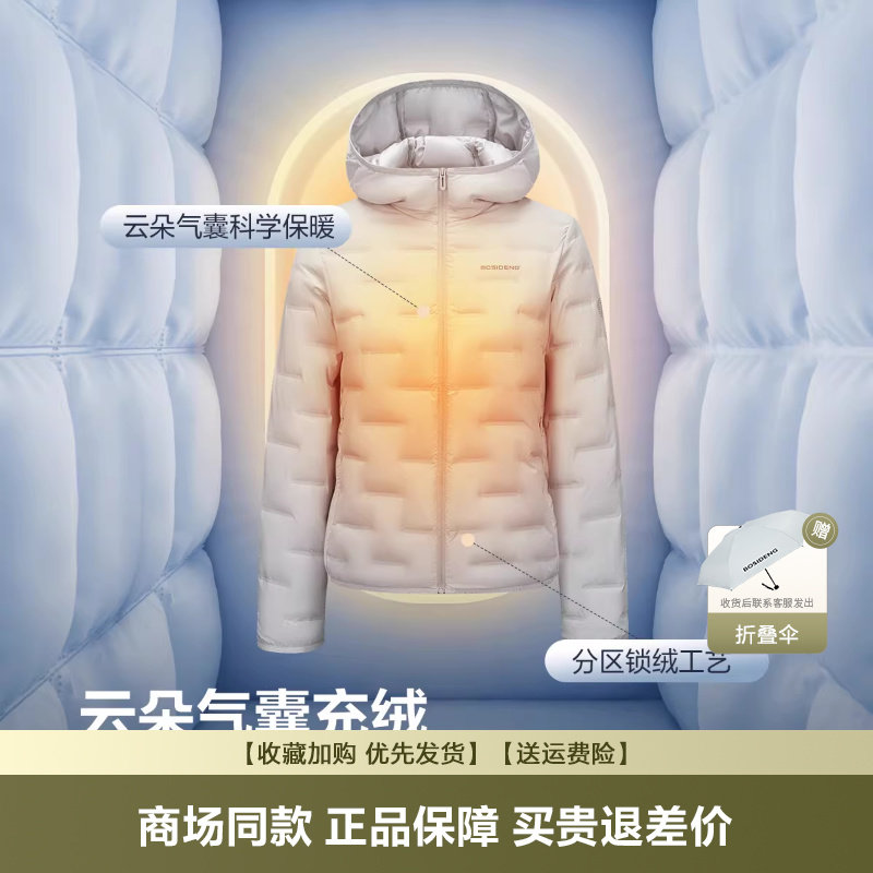 波司登轻薄羽绒服女2025新款鹅绒错格压胶短款连帽休闲舒适外套