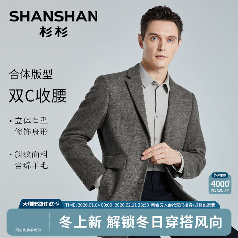 SHANSHAN杉杉官方毛呢西装外套男秋冬2025新款商务休闲羊毛呢西服