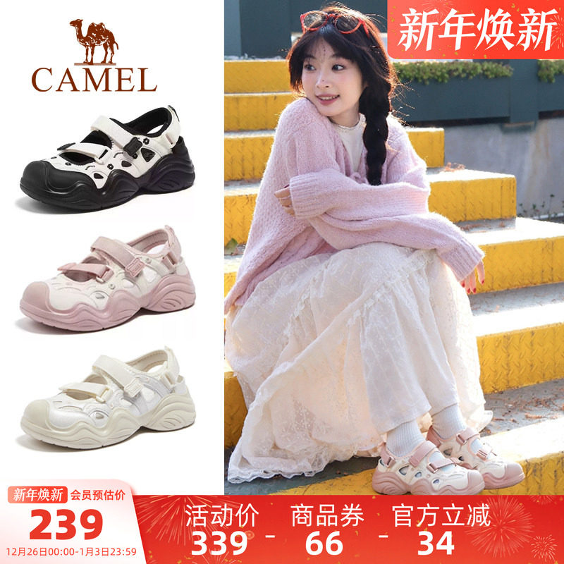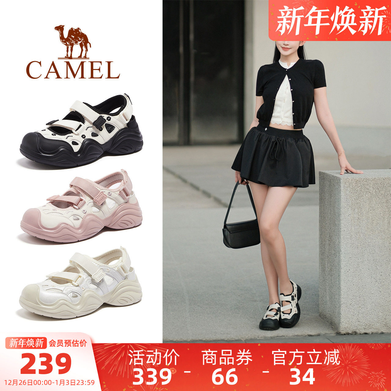 骆驼丑萌鞋女鞋2025夏季新款玛丽珍凉鞋女厚底镂空透气户外运动鞋