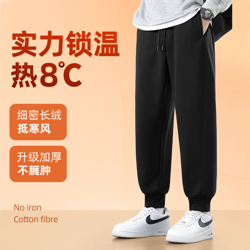 真维斯加绒裤子男冬季一体绒男士运动裤纯色加厚保暖休闲裤男款L