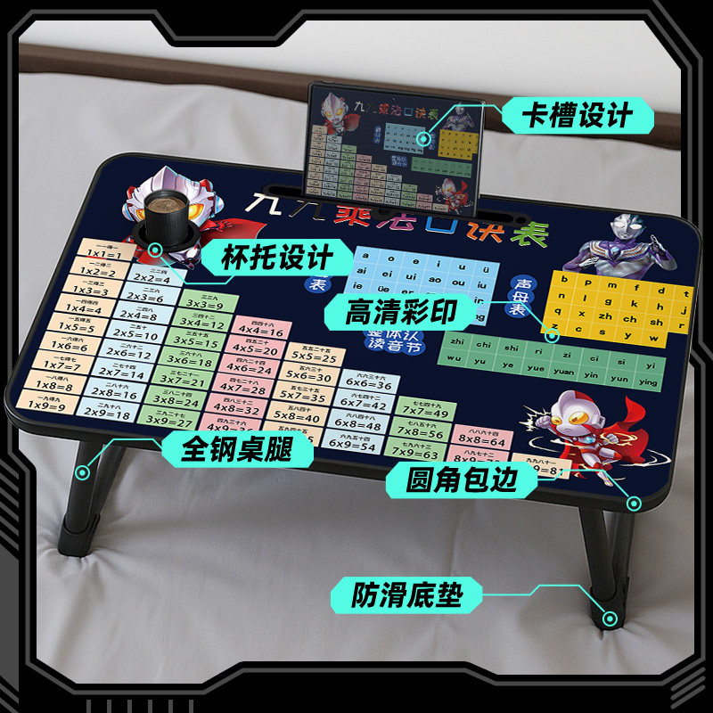 床上小桌子可折叠奥特曼乘法口诀表儿童小学生学习桌笔记本电脑桌卧室坐地小桌板电脑台学生宿舍上铺懒人神器
