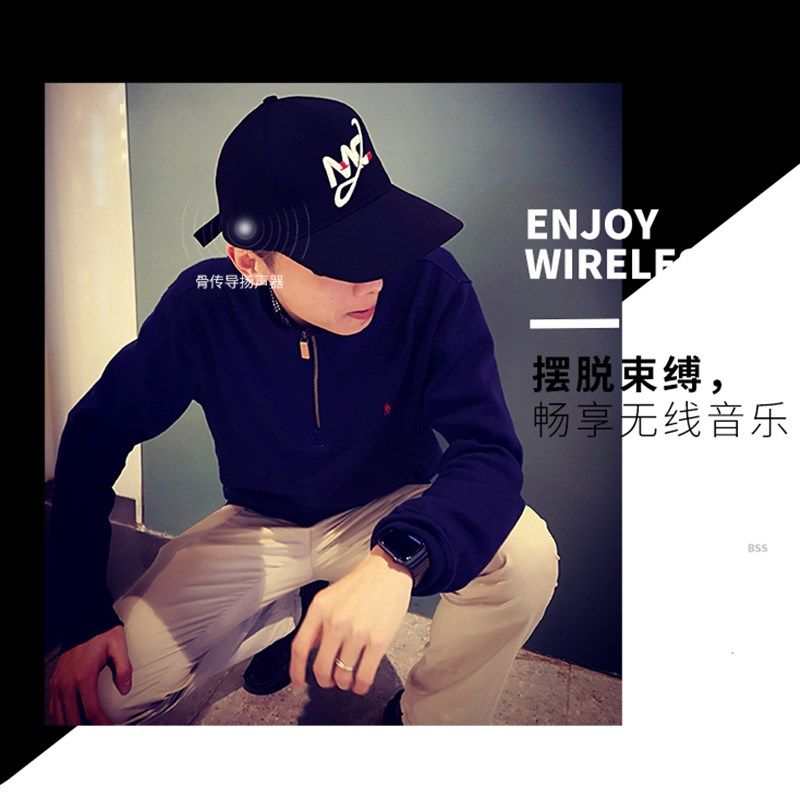 无线蓝牙头戴式不入耳耳机智能可穿戴隐形音响超长待机骨传导帽子
