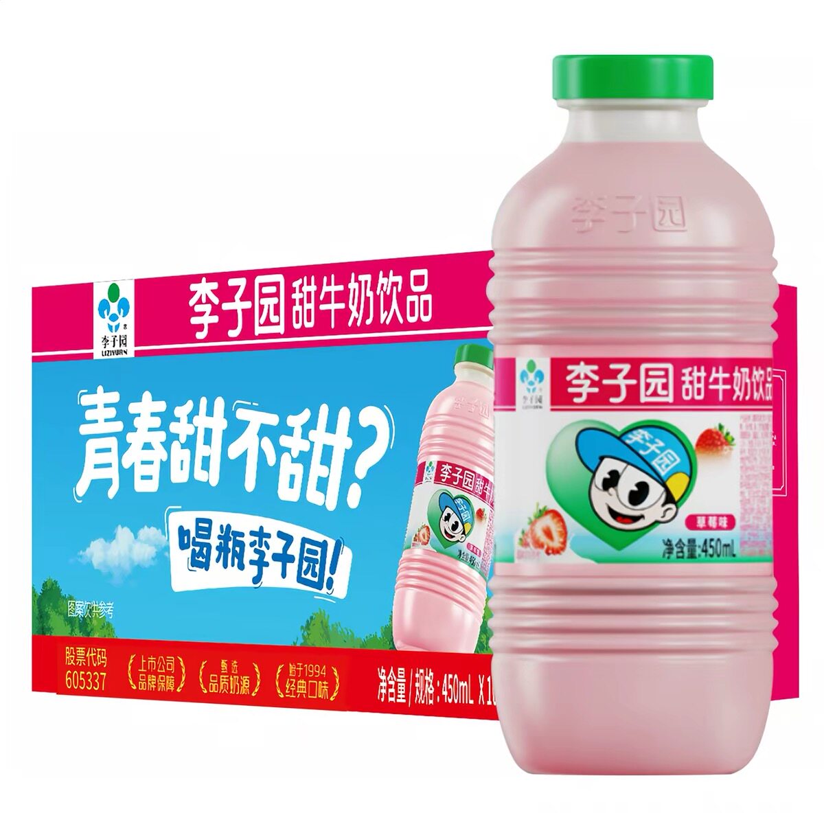李子园甜牛奶450ml瓶装草莓味原味速溶小瓶装乳饮料健康休闲饮品