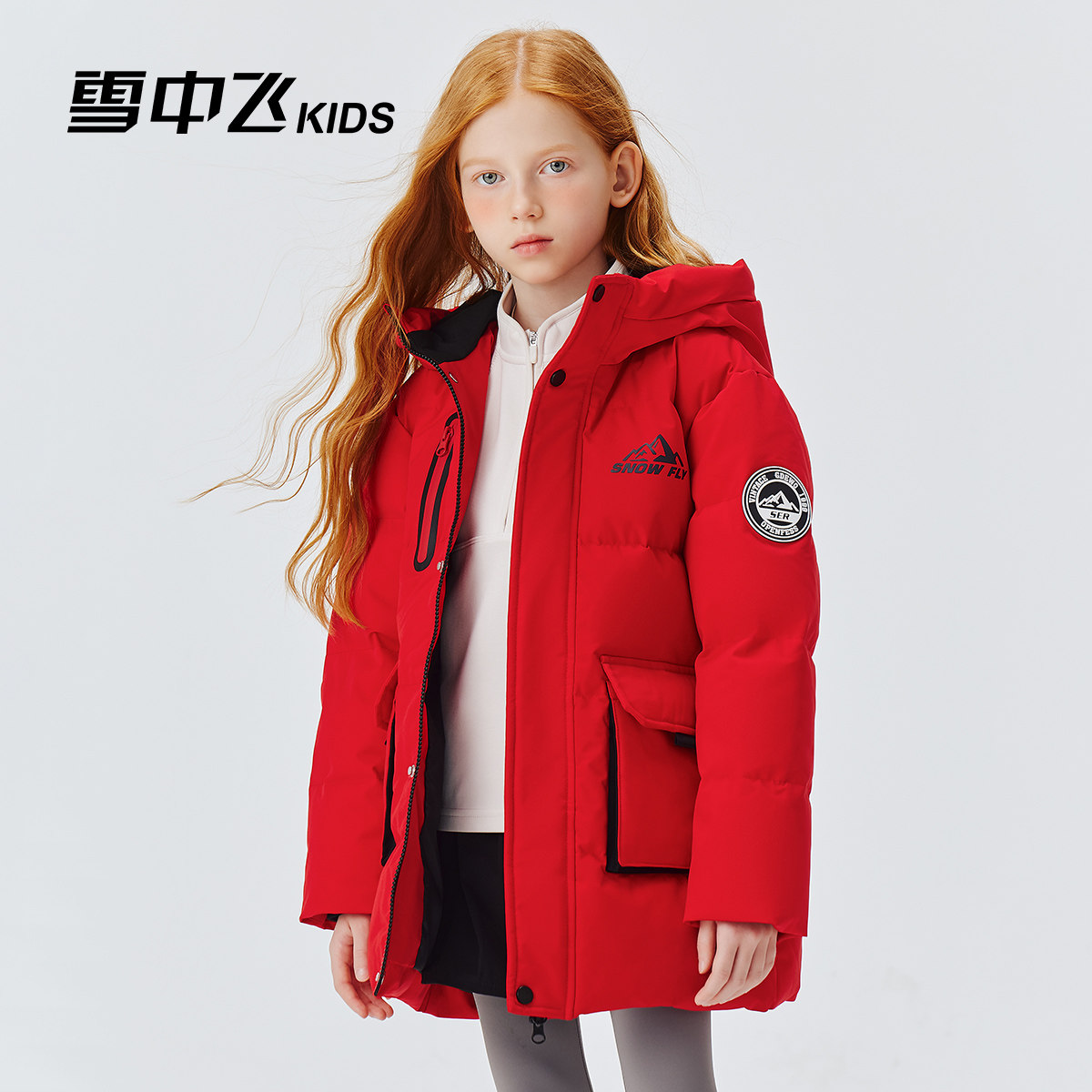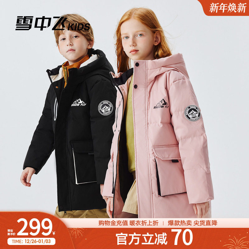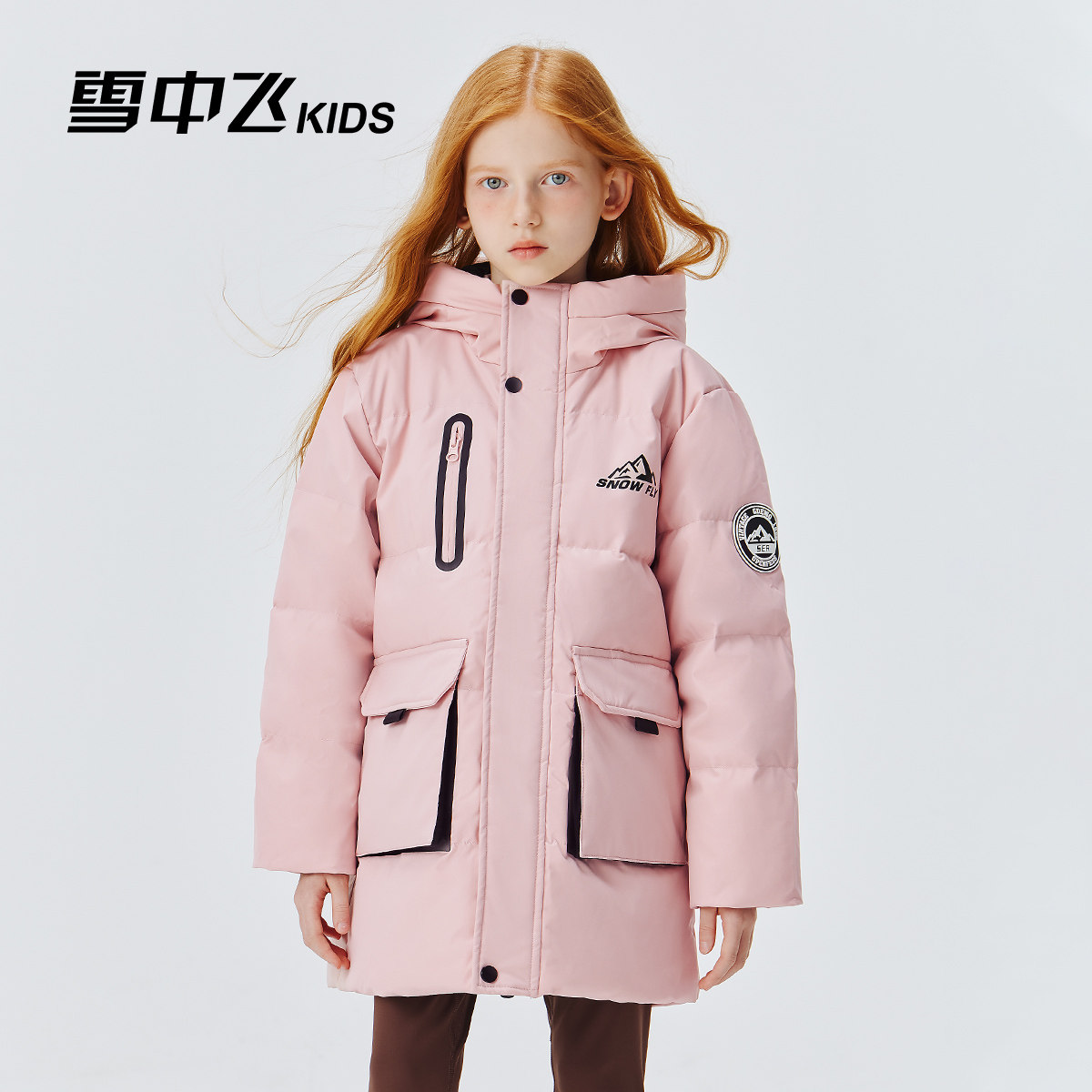 雪中飞kids儿童羽绒服男童冬季新款中长款女童连帽加厚保暖防寒服