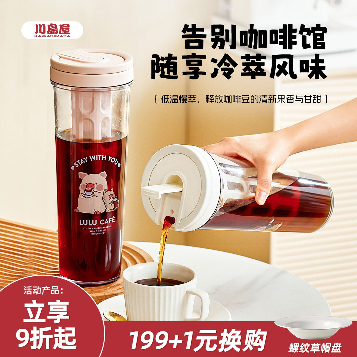 川岛屋&lulu猪联名 咖啡冷萃壶家用冷泡茶壶冷水壶冷萃瓶冷萃杯子