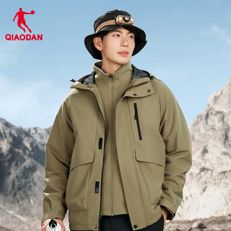 乔丹户外三合一风衣男生2026春季新款保暖防风冲锋外套防泼水登山