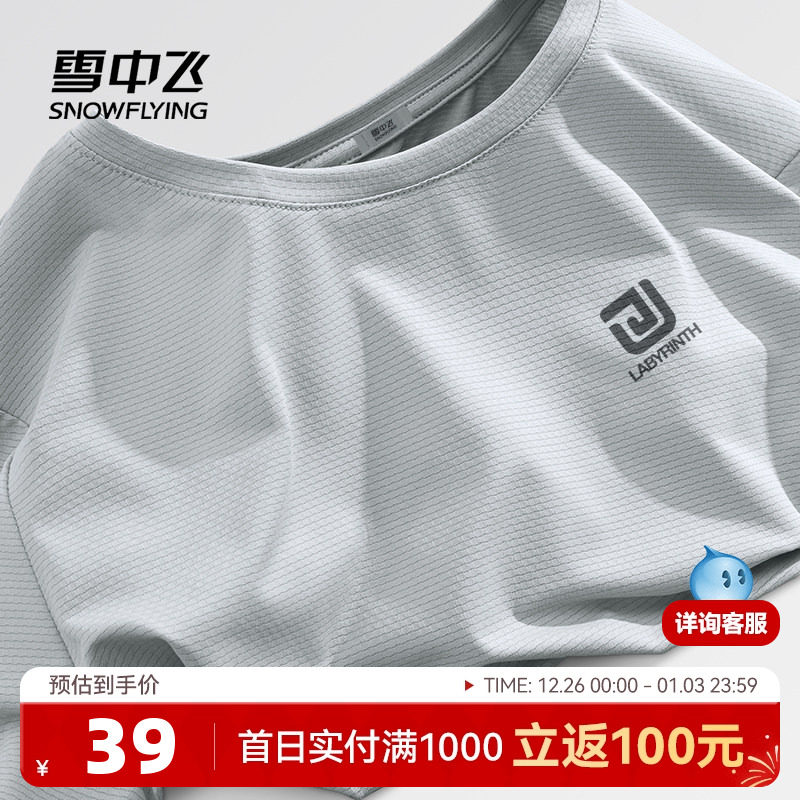 雪中飞冰丝运动短袖男夏季2025新款男士简约浅灰色凉感防晒t恤PC