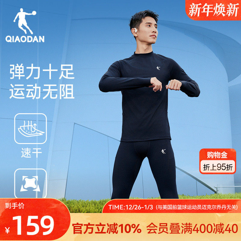乔丹紧身衣两件套男士冬季新款训练跑步加绒保暖健身服速干运动服