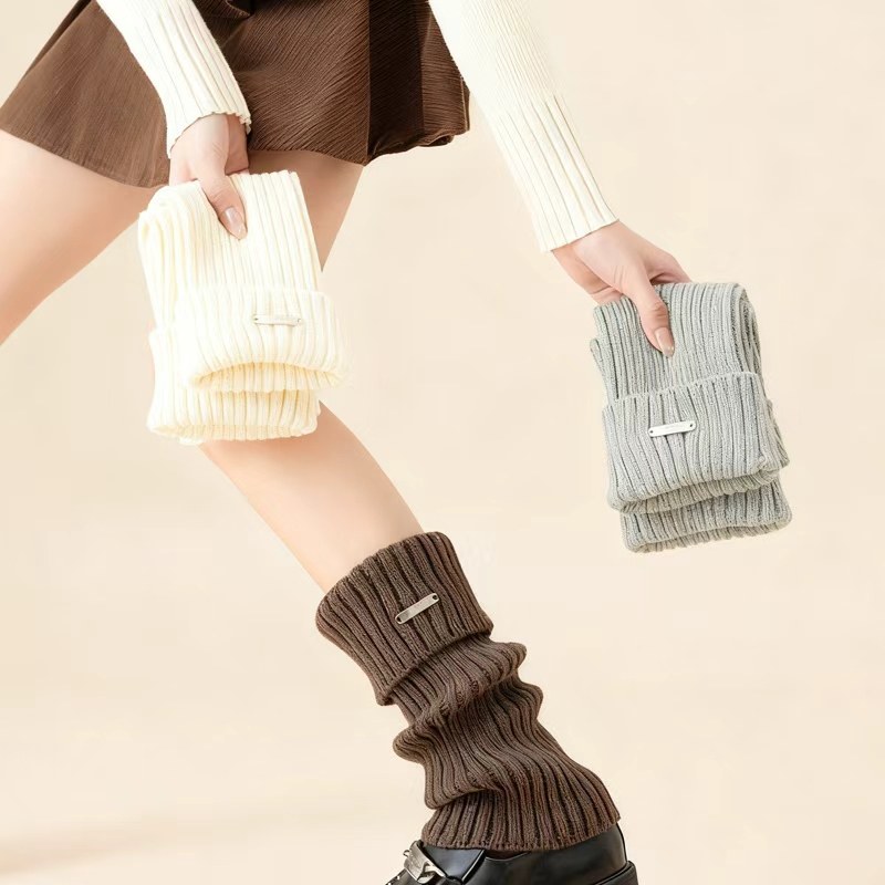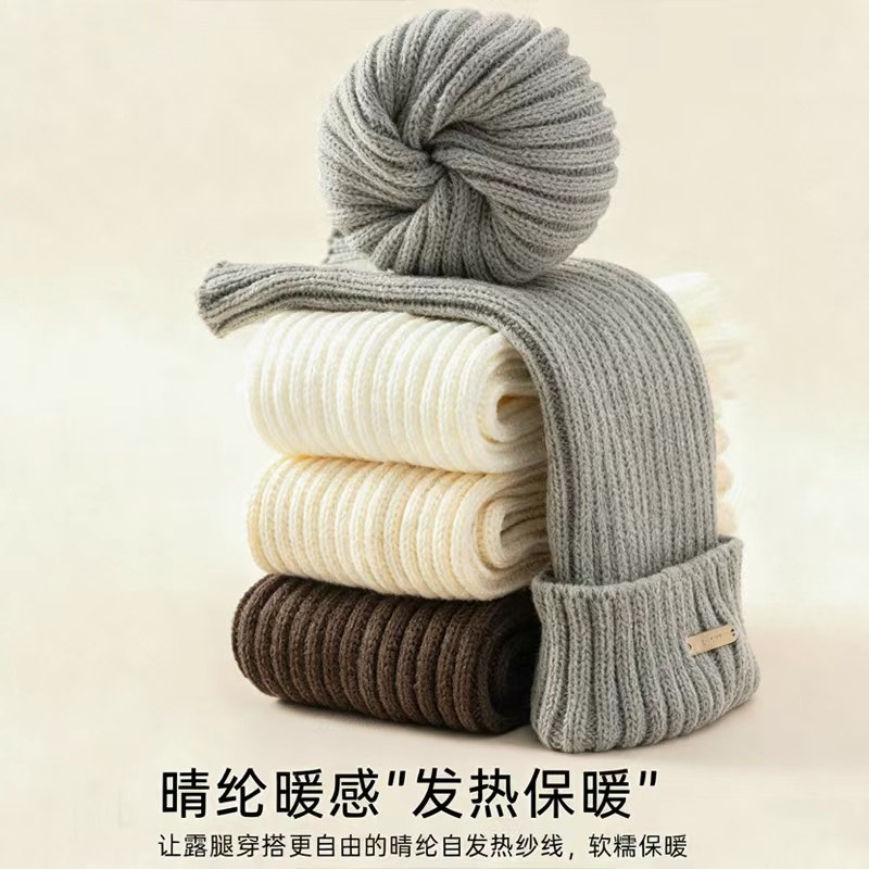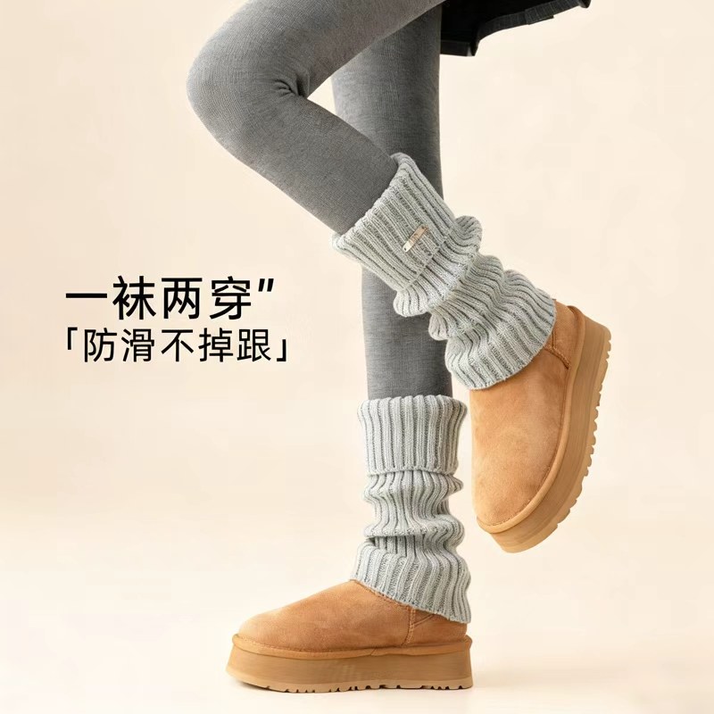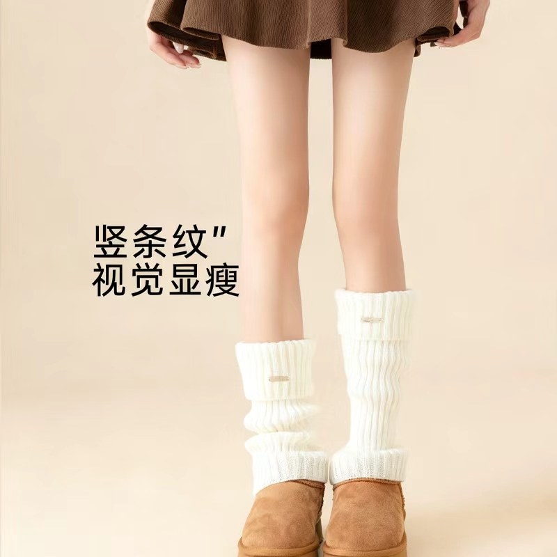 针织袜套白色袜子女小腿袜JK雪地靴子腿套秋冬保暖加厚长筒堆堆袜