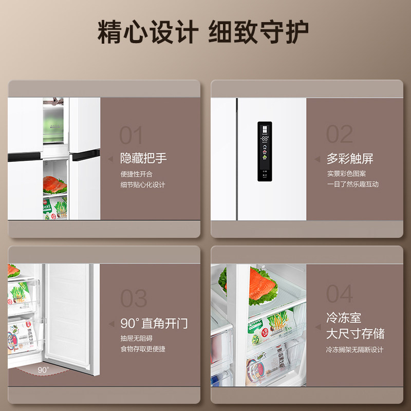 美的华凌神机547双系统超薄零嵌入式十字双开四门家用一级冰箱