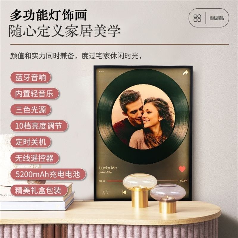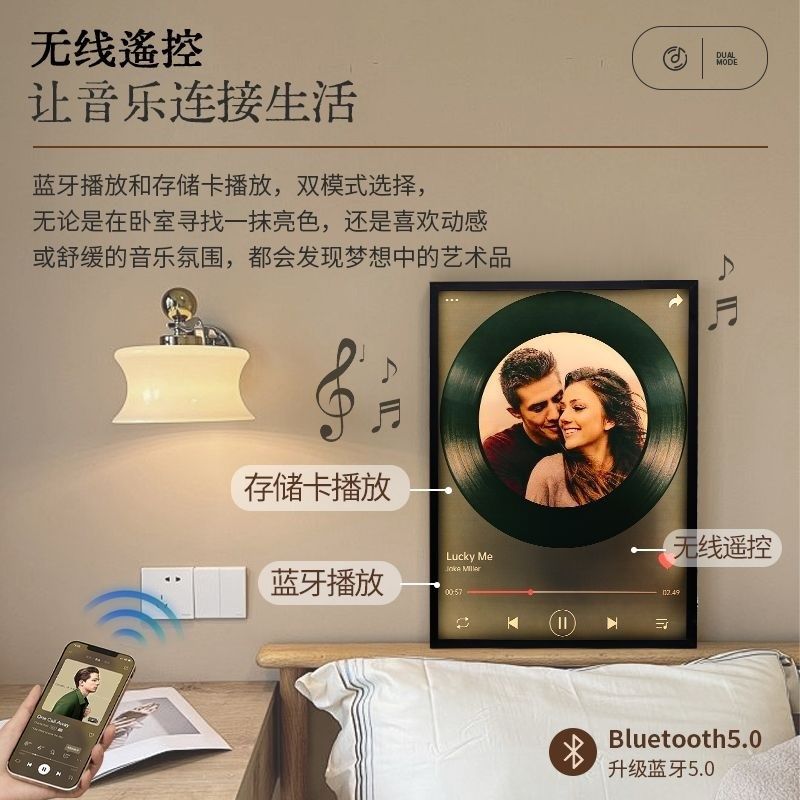 壁画音响黑胶相框音响来图s定制照片覆古蓝牙音箱家用无线DIY生日