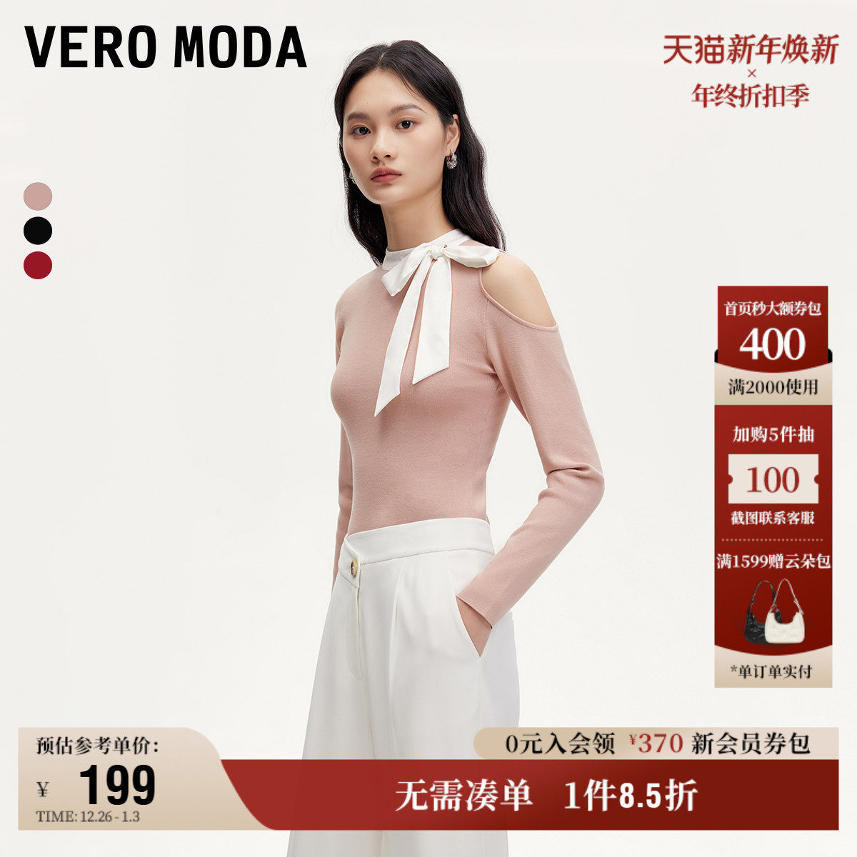 Vero Moda奥莱针织衫女秋冬新款肩部镂空可拆蝴蝶结半高领流行