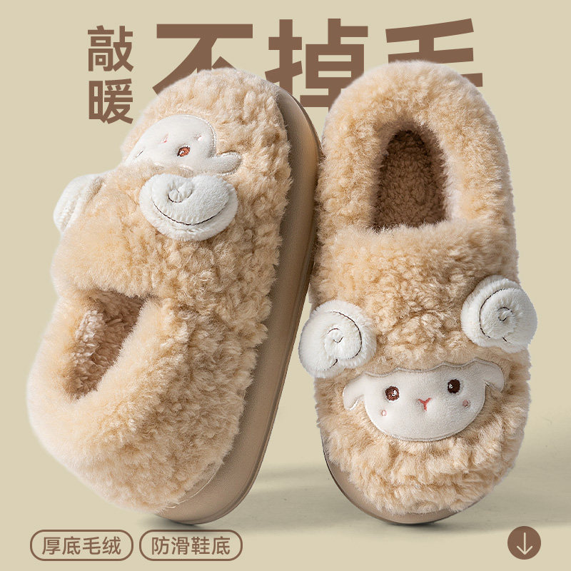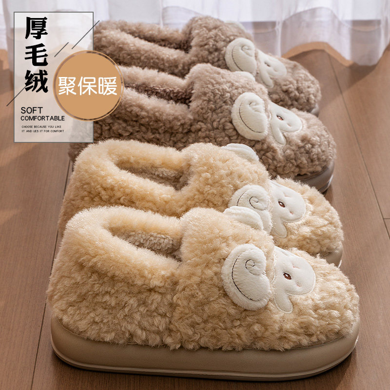 绵羊棉拖鞋女士冬季2025新款家居室内加绒加厚保暖包跟情侣棉鞋男