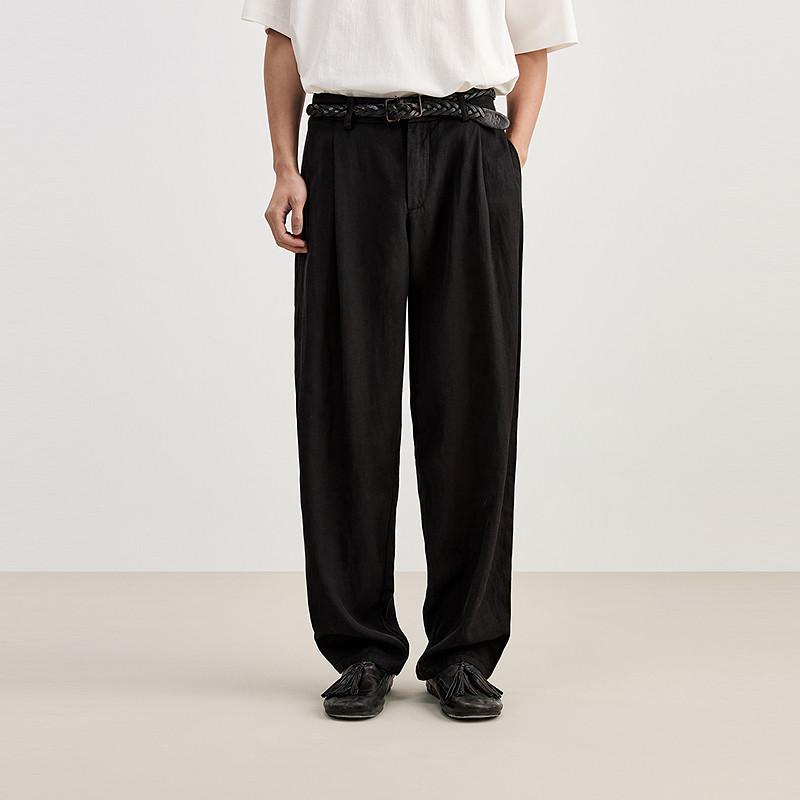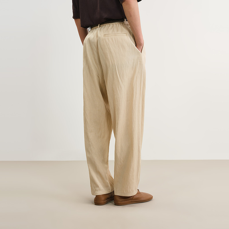 LR MADE 25SS 侧缝打褶 小弯刀垂感 碳磨洗水纯棉休闲廓形长裤