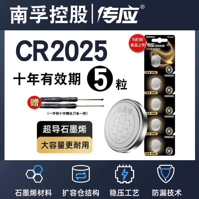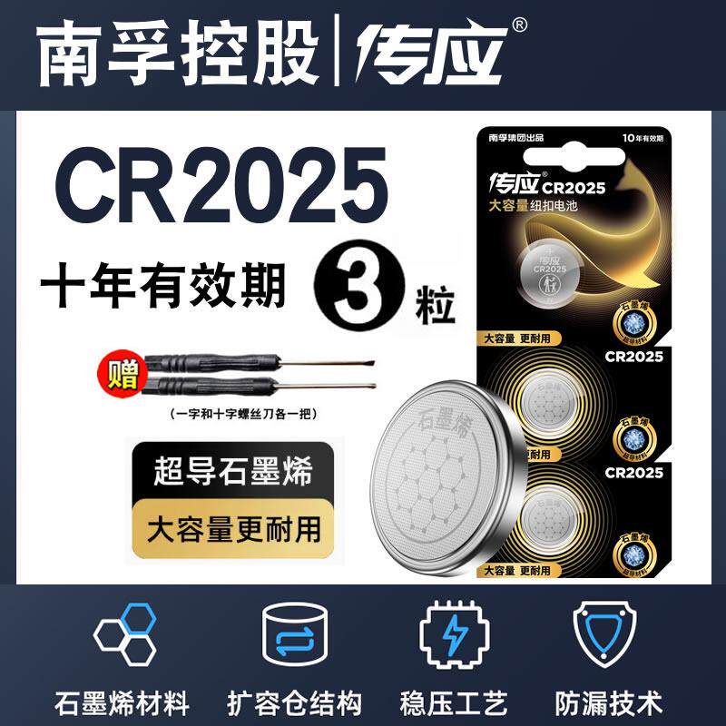 南孚传应纽扣电池CR2032/CR2025/CR2016石墨烯锂3V汽车钥匙遥控器
