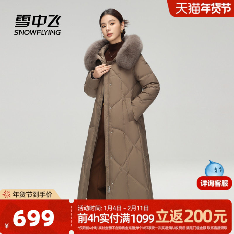 雪中飞2024冬新款女士长款羽绒服连帽狐狸毛领加厚休闲优雅气质