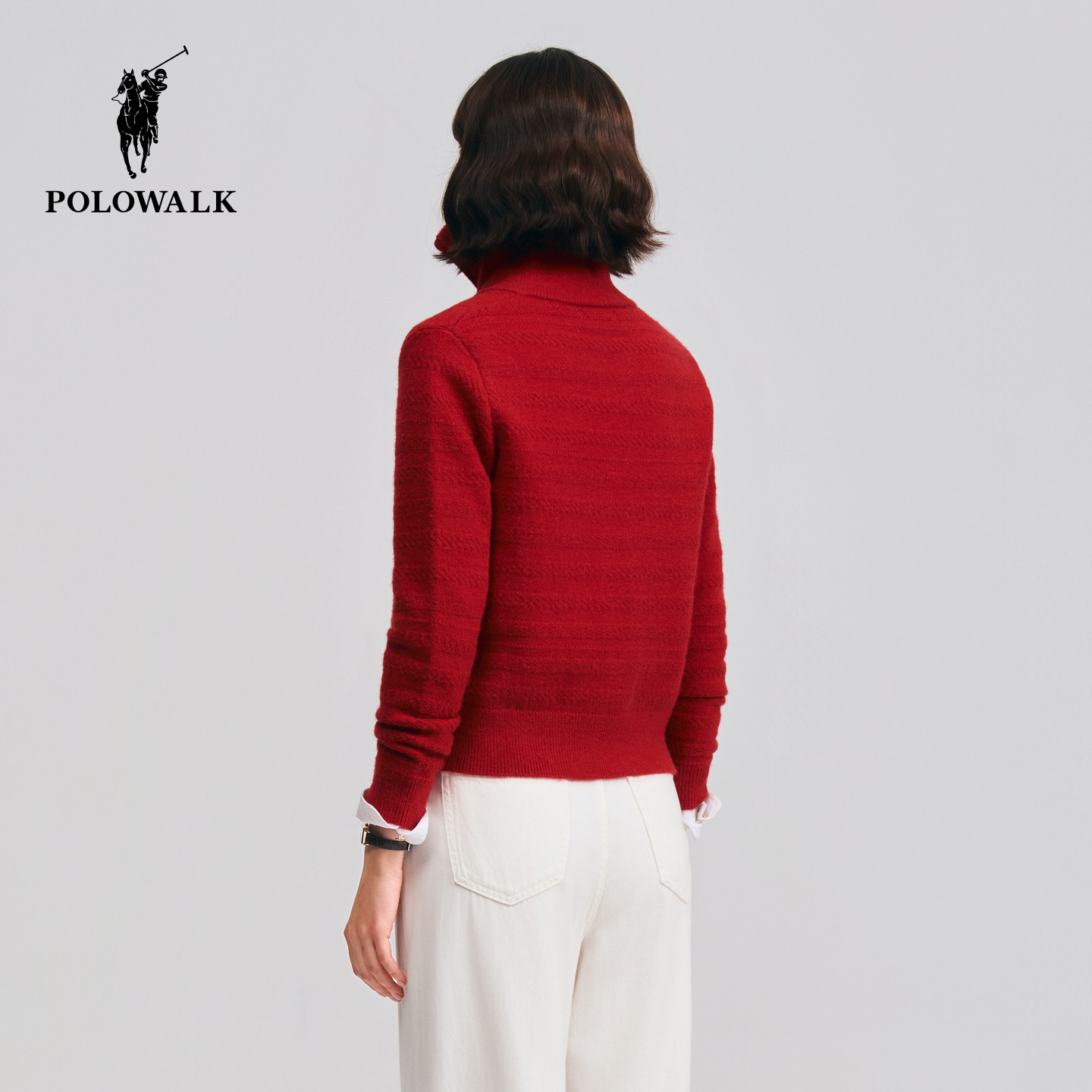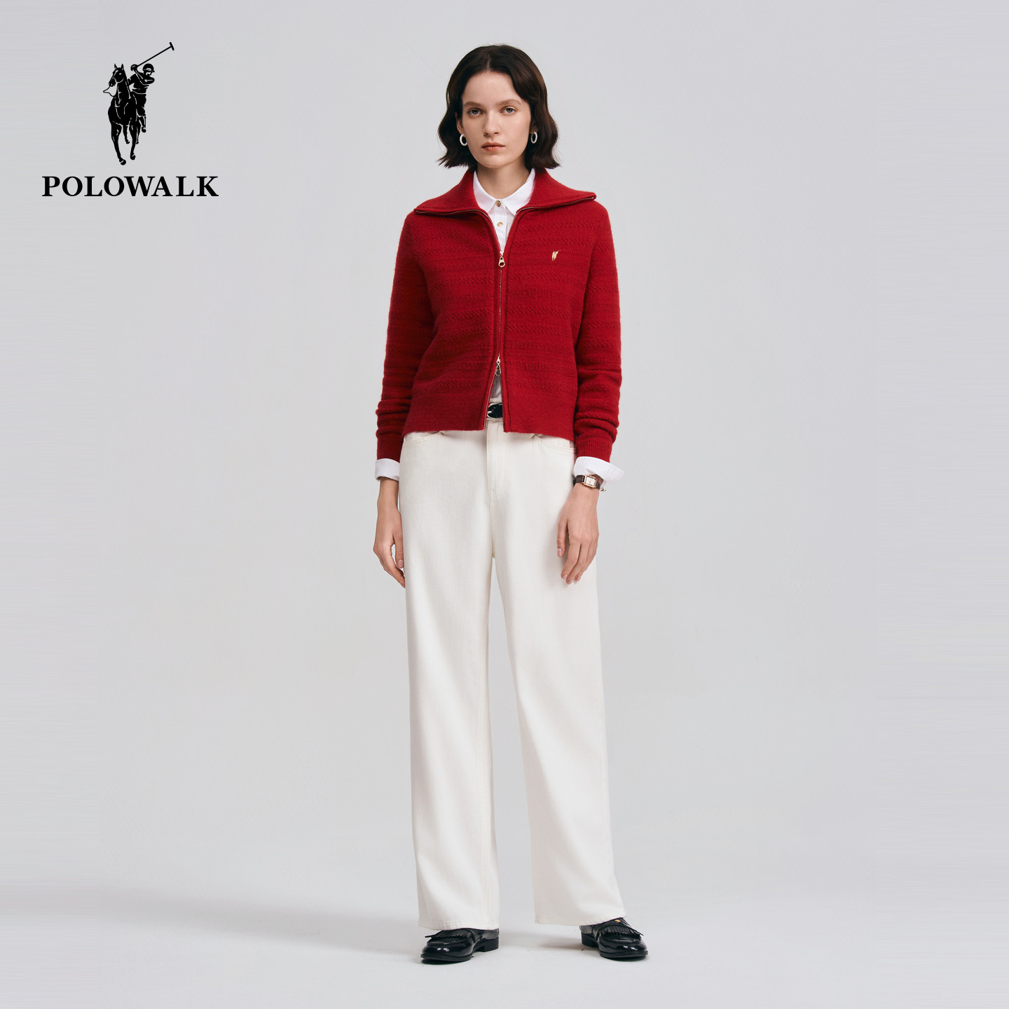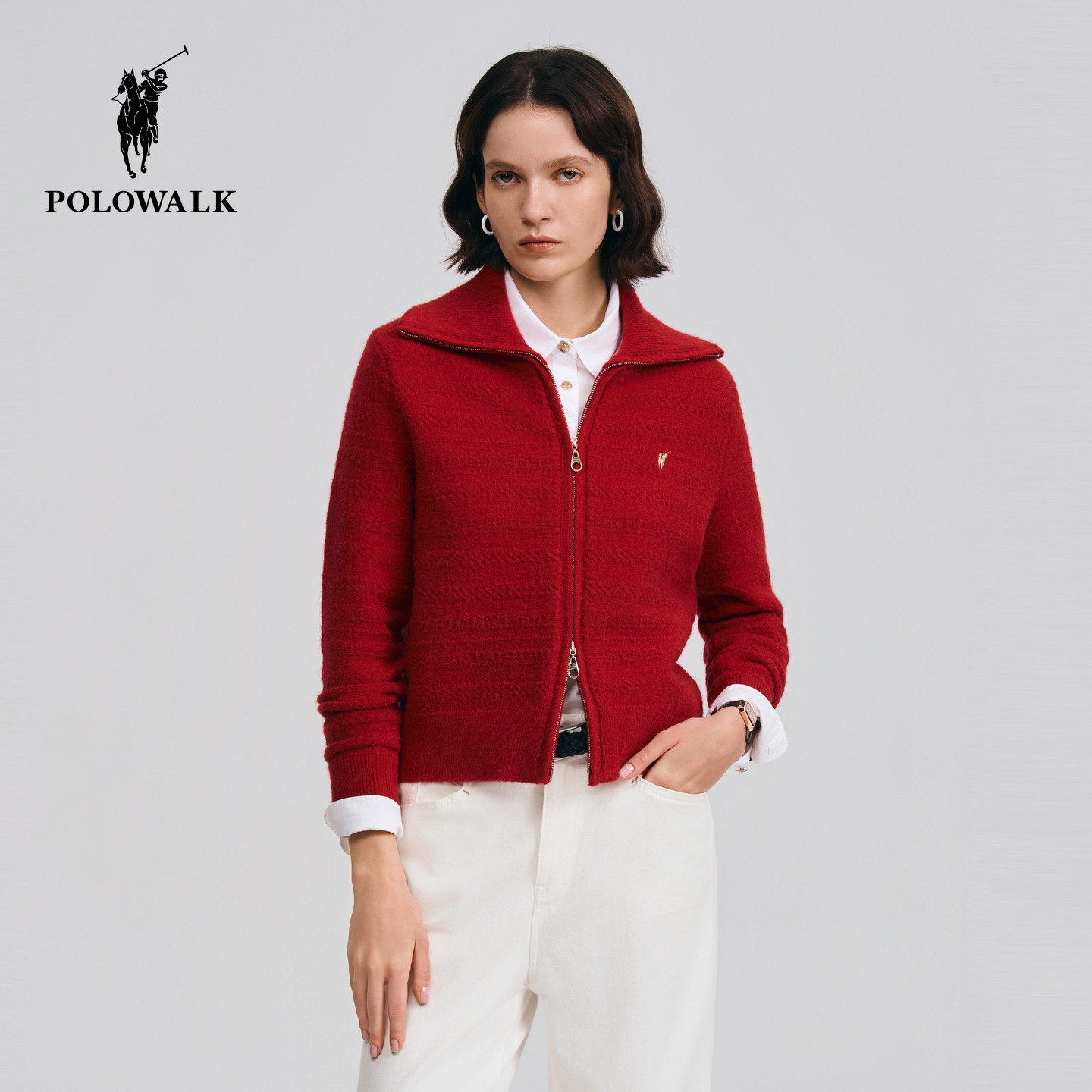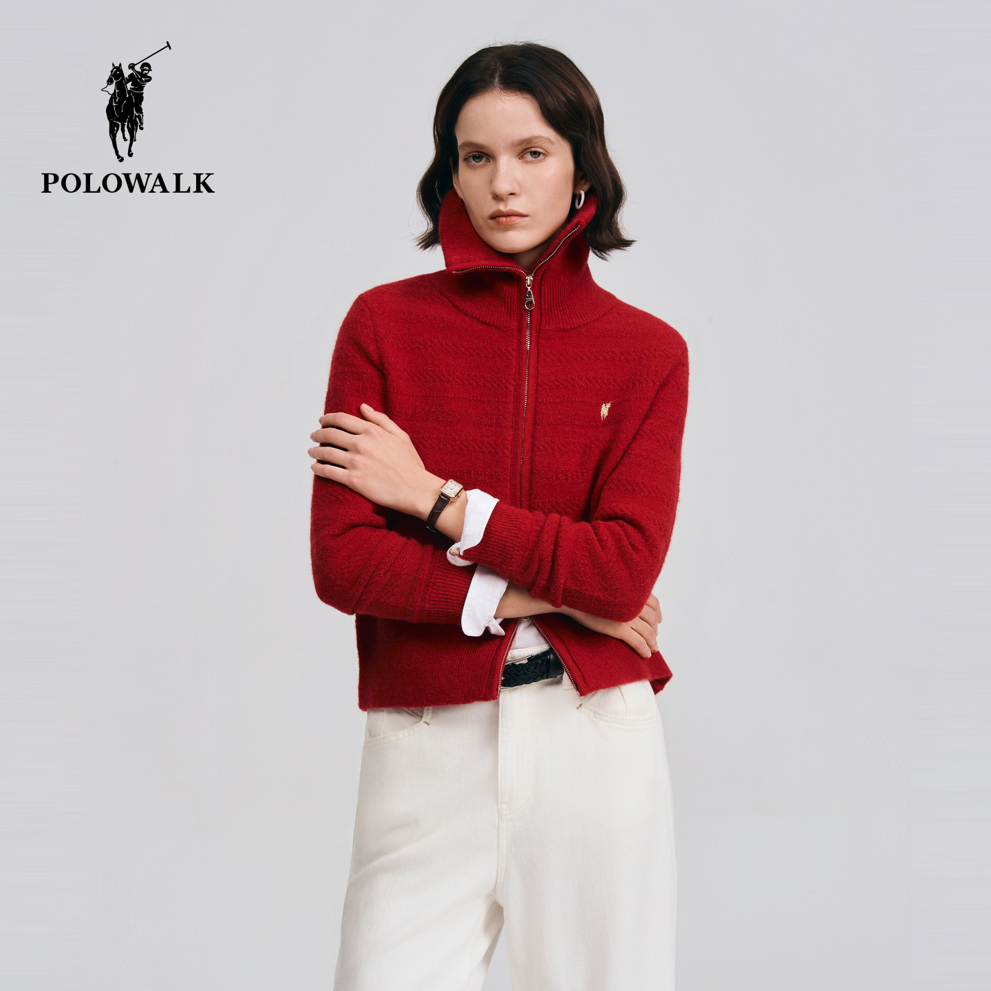 【红色款】POLOWALK女式长袖针织衫2026春季新品新年红色针织开衫