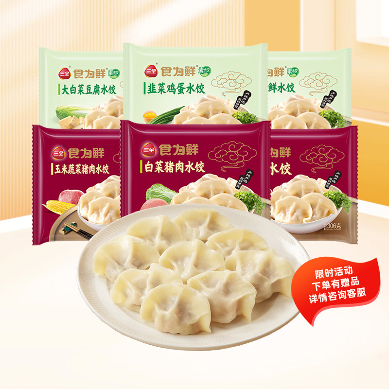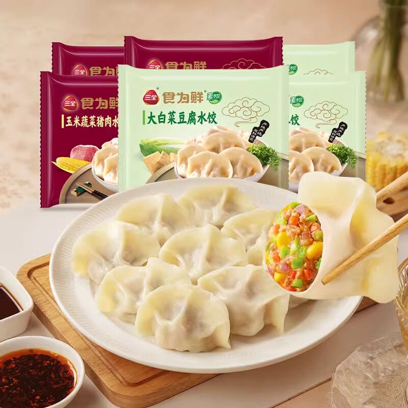 三全官方韭菜鸡蛋白菜三鲜白菜猪肉玉米水饺早餐方便速食半成品