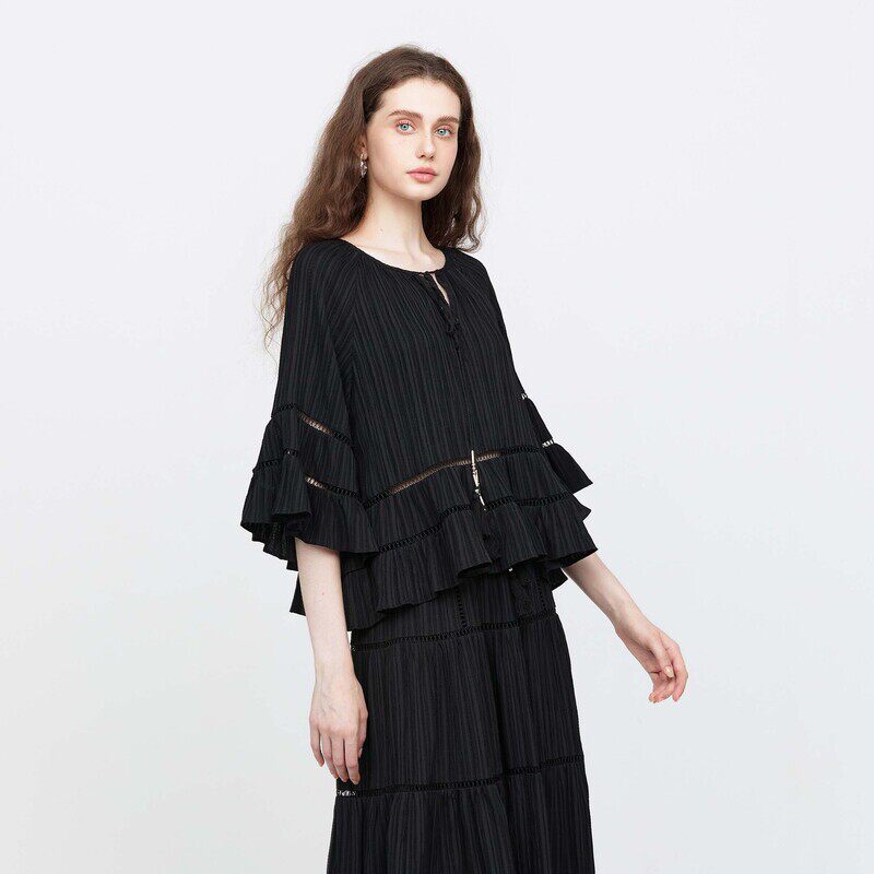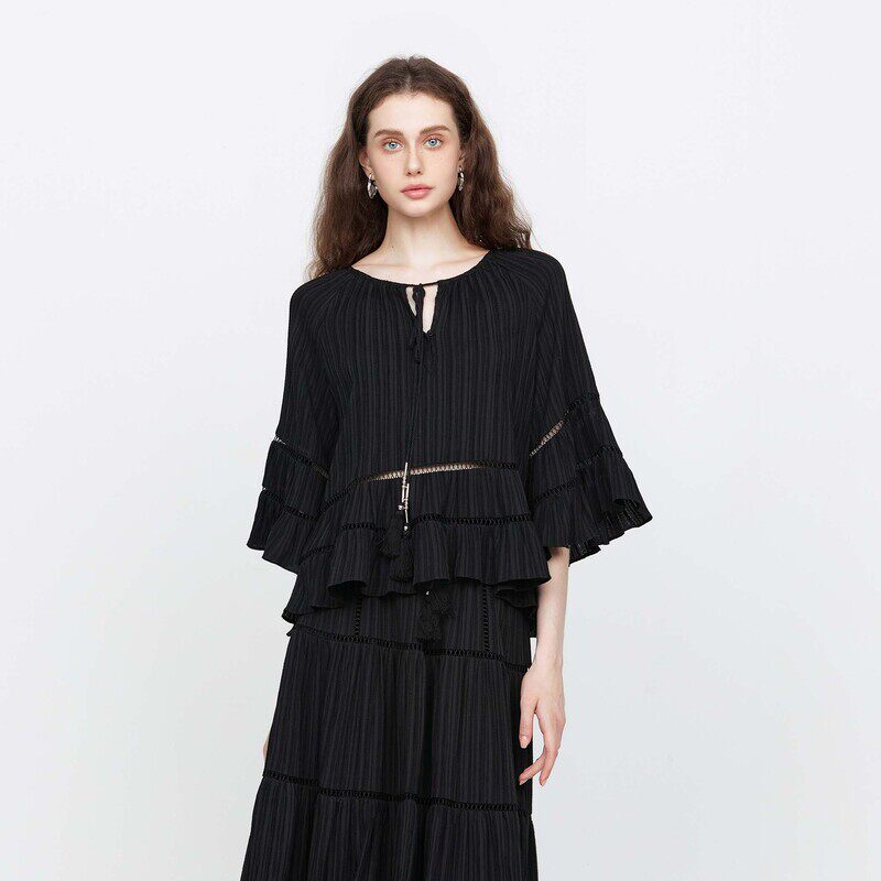 sdeer圣迪奥女装新中式套装圆领流苏肌理宽松衬衫S24360401