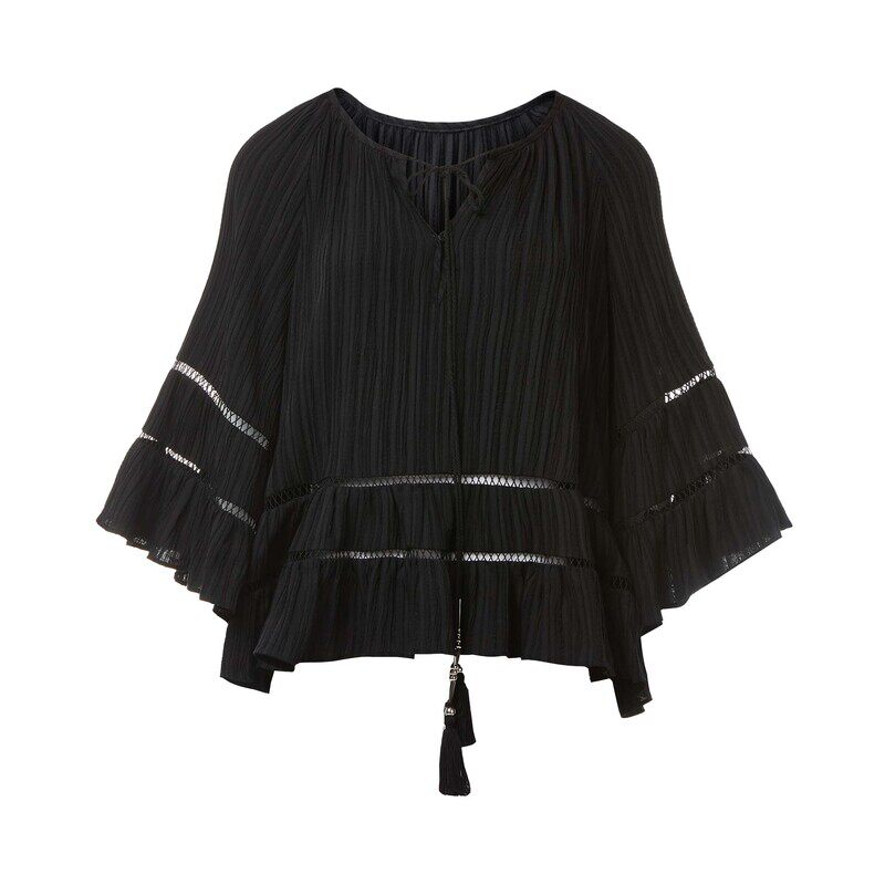 COCOBELLA名媛风手工压褶木耳边雪纺衬衫气质通勤飘带衬衣SR7062