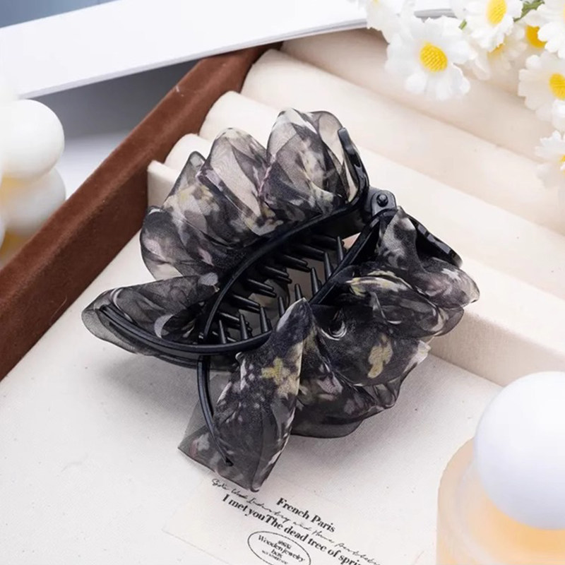 水墨花叶气质褶皱网纱百搭抓夹优雅丸子头发饰百搭头饰新品抓夹