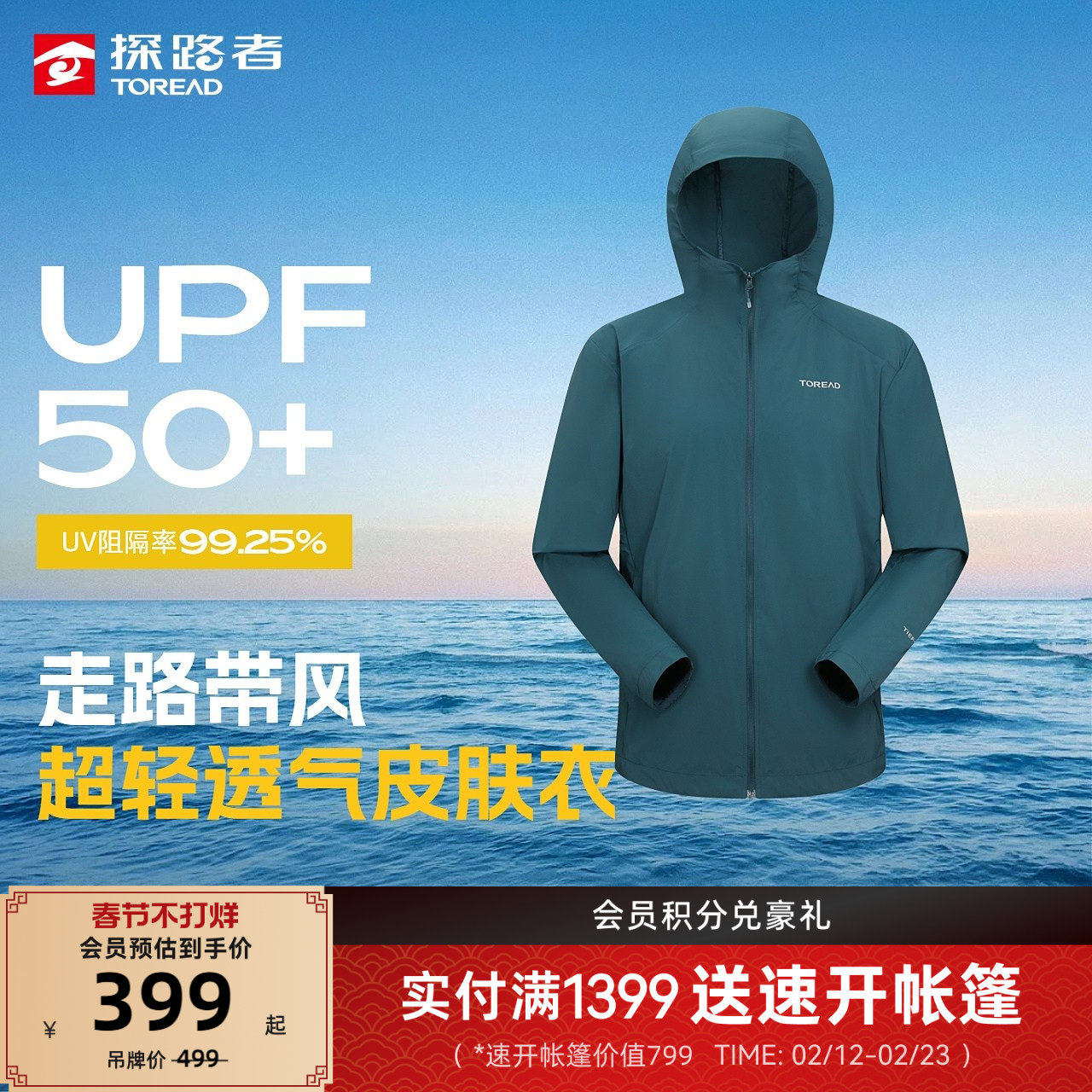 探路者男式皮肤衣UPF50+防紫外线防泼水超轻高弹透气户外防晒衣女