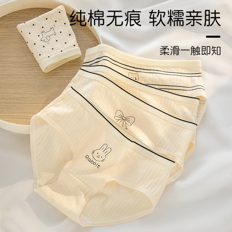 内裤女生纯棉抗菌100%全棉裆2023新款日系无痕透气女士中腰短裤