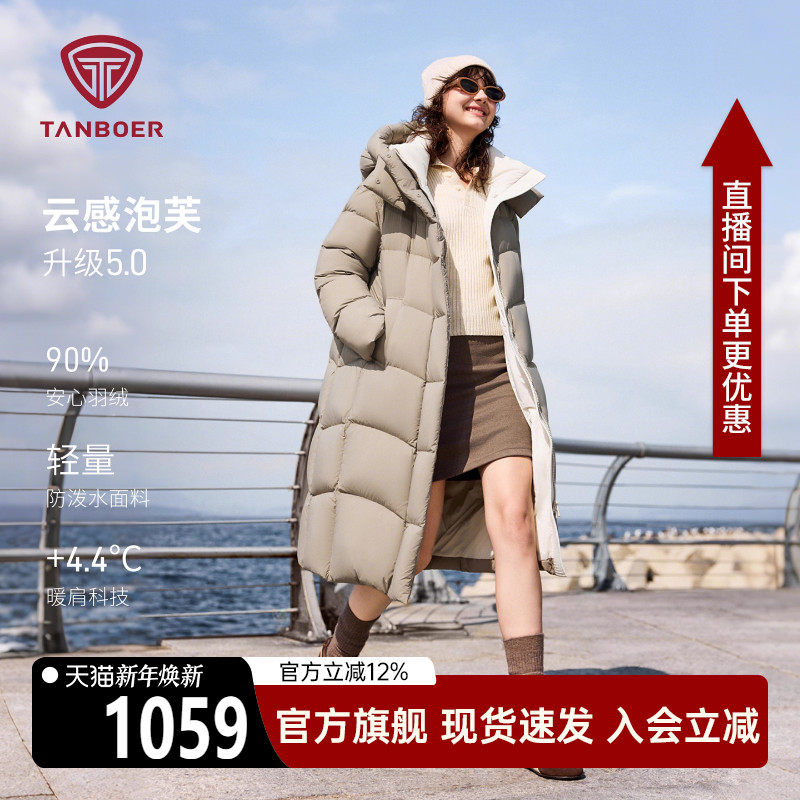 坦博尔2025年冬新款及膝长款羽绒服女宽松时尚潮流加厚保暖外套Z