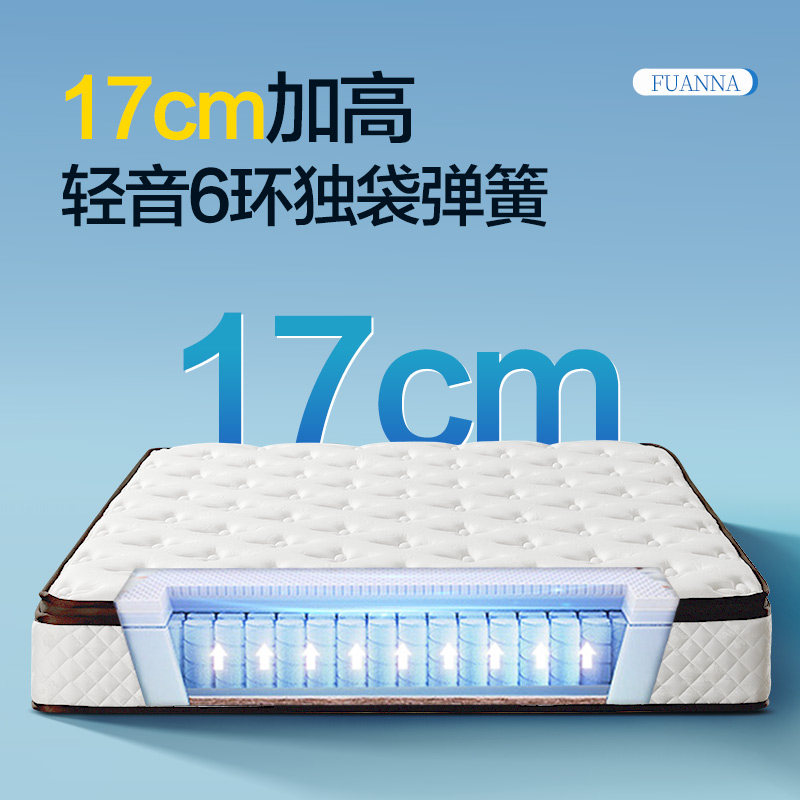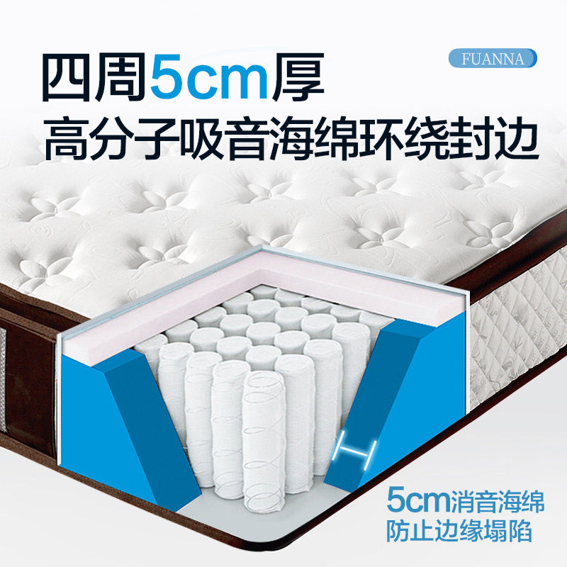 富安娜床垫3cm加厚乳胶床垫软硬两用1.8双人独立弹簧席梦思弹簧垫