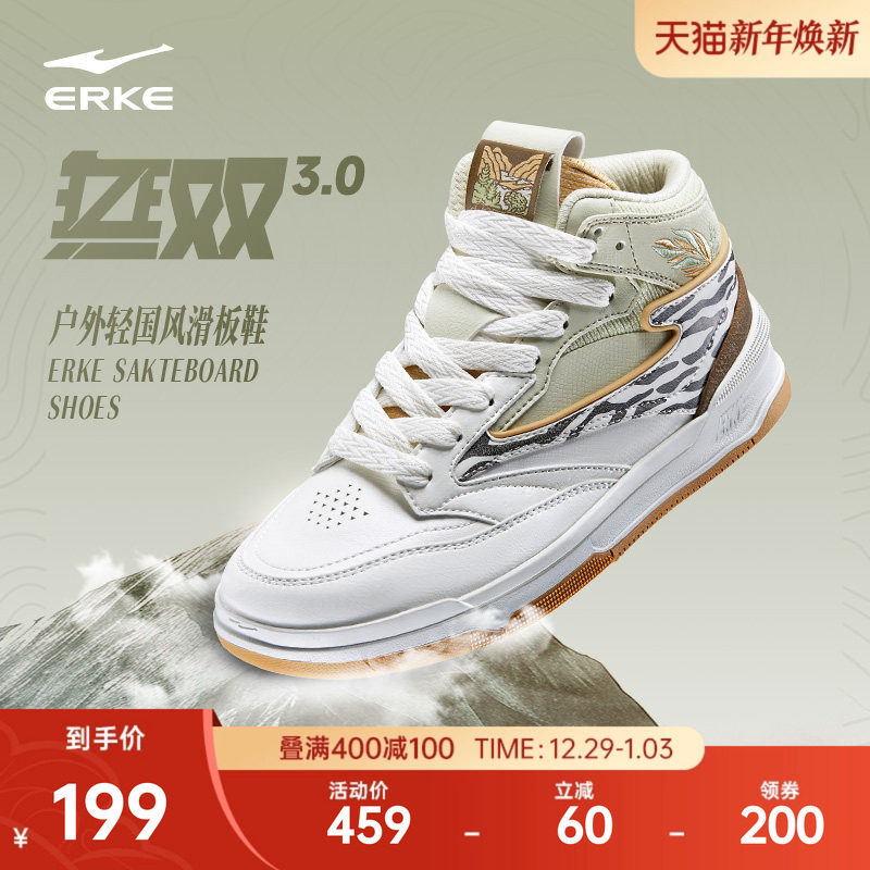 无双大师鸿星尔克高帮板鞋男鞋冬季新款鞋子复古休闲鞋厚底运动鞋