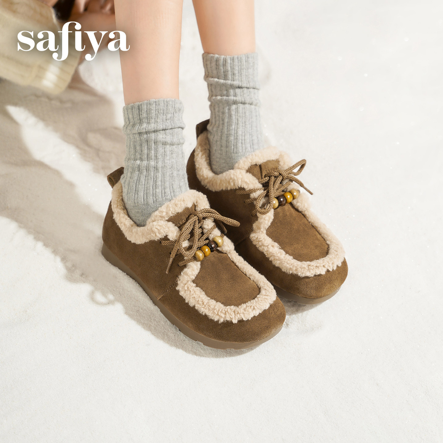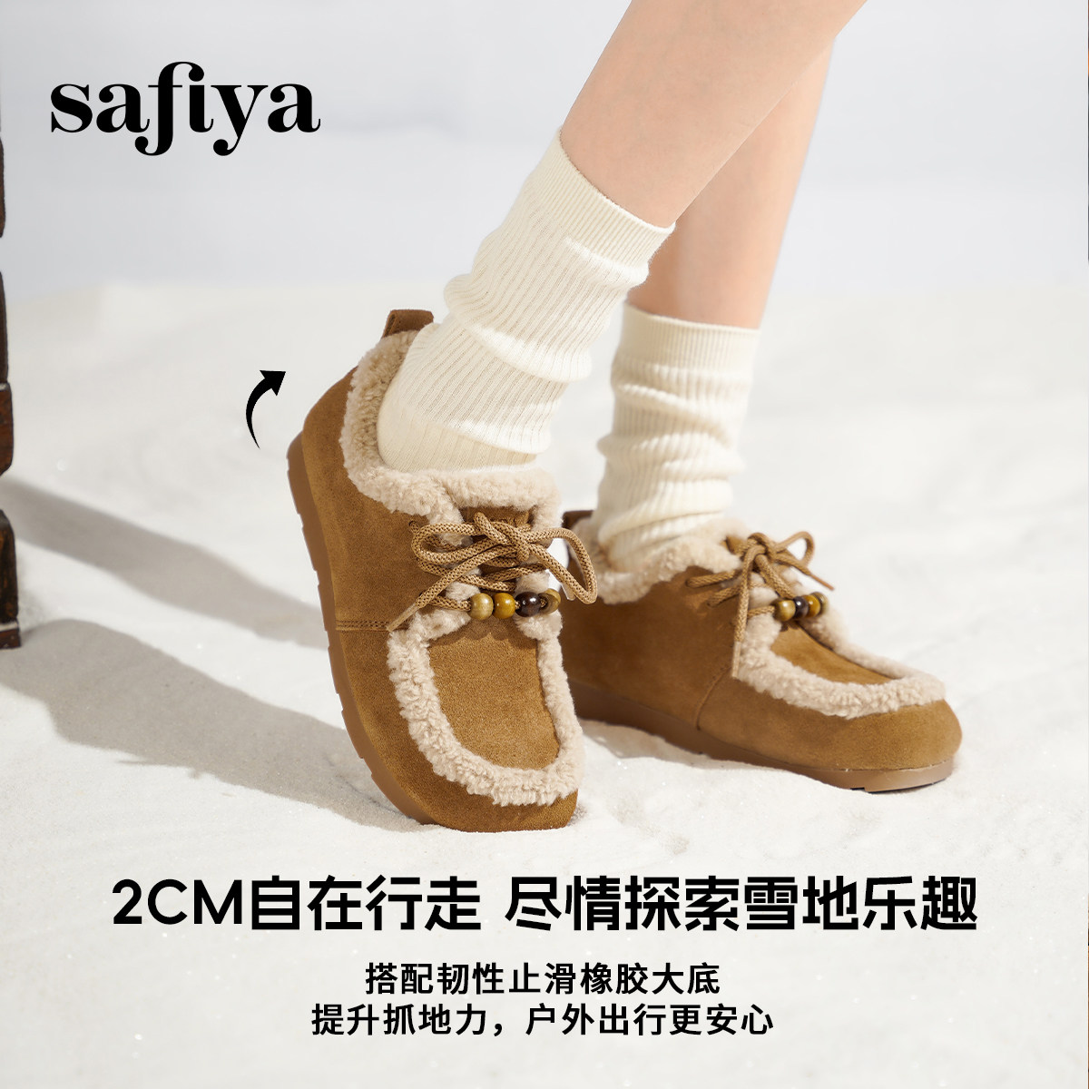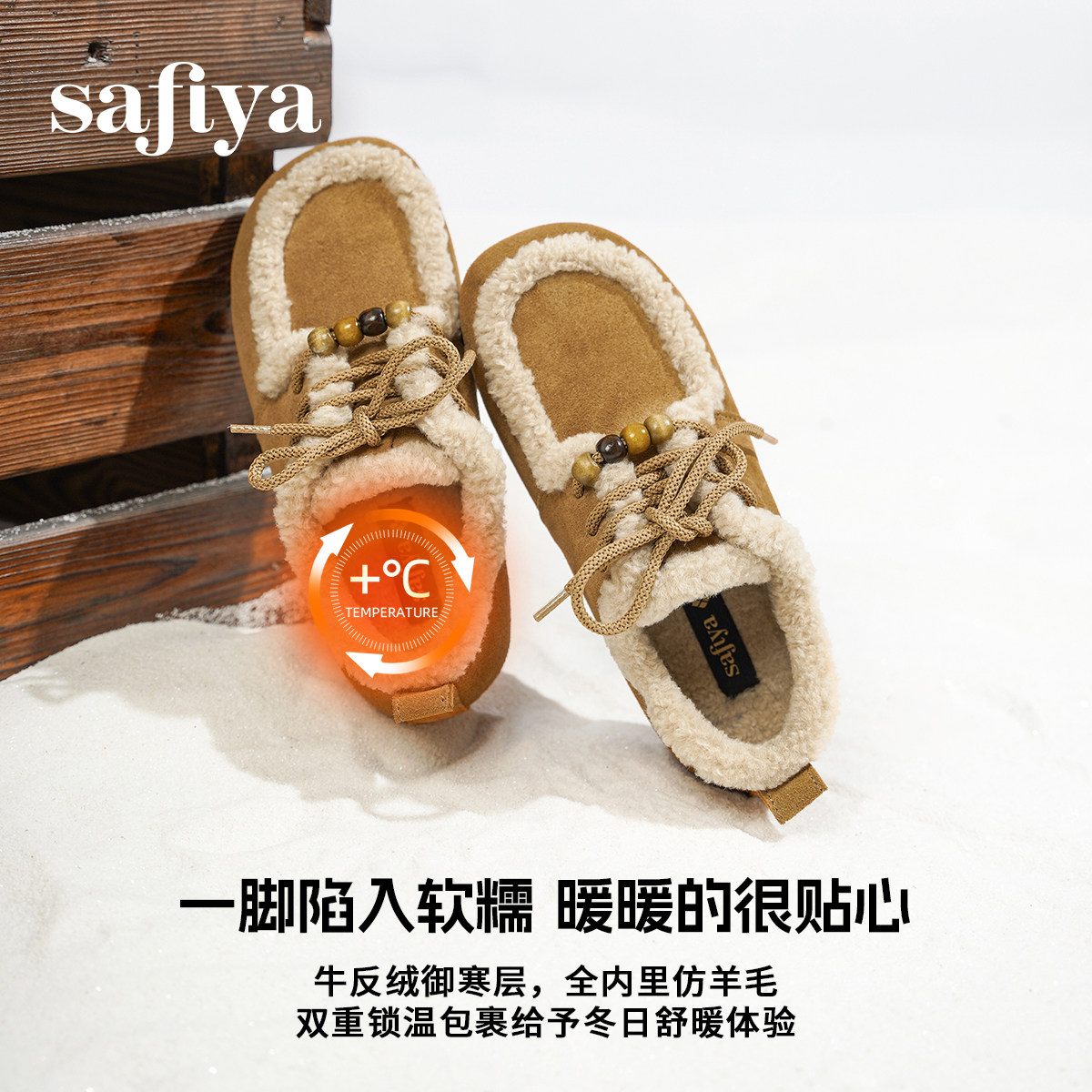 Safiya/索菲娅2025冬季新品串珠系带加绒保暖休闲毛毛鞋雪地靴女